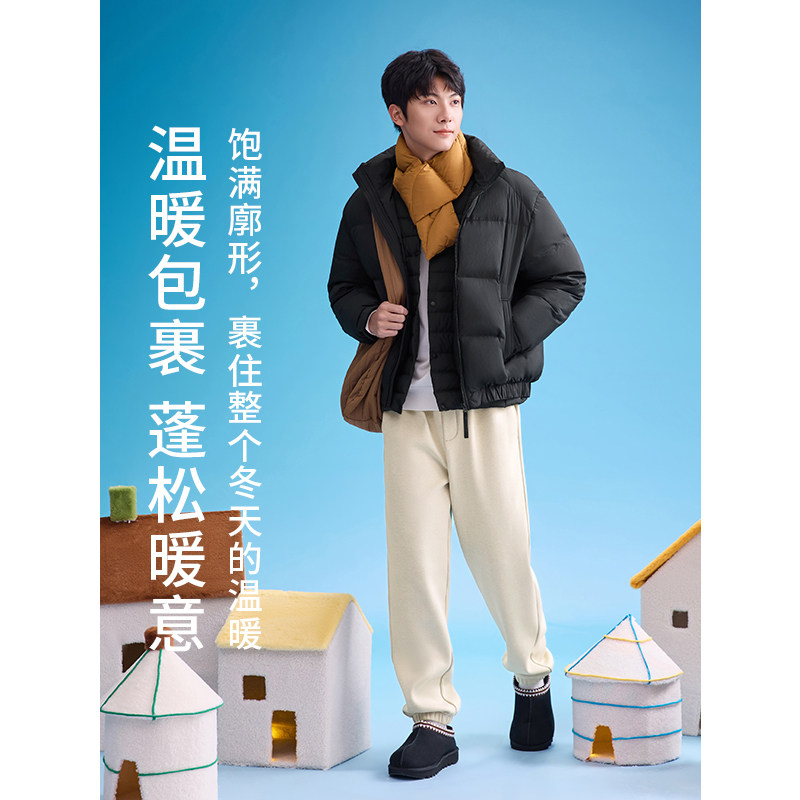 热风男士立领羽绒服2025年冬季新款舒适面包服情侣款蓬松羽绒服