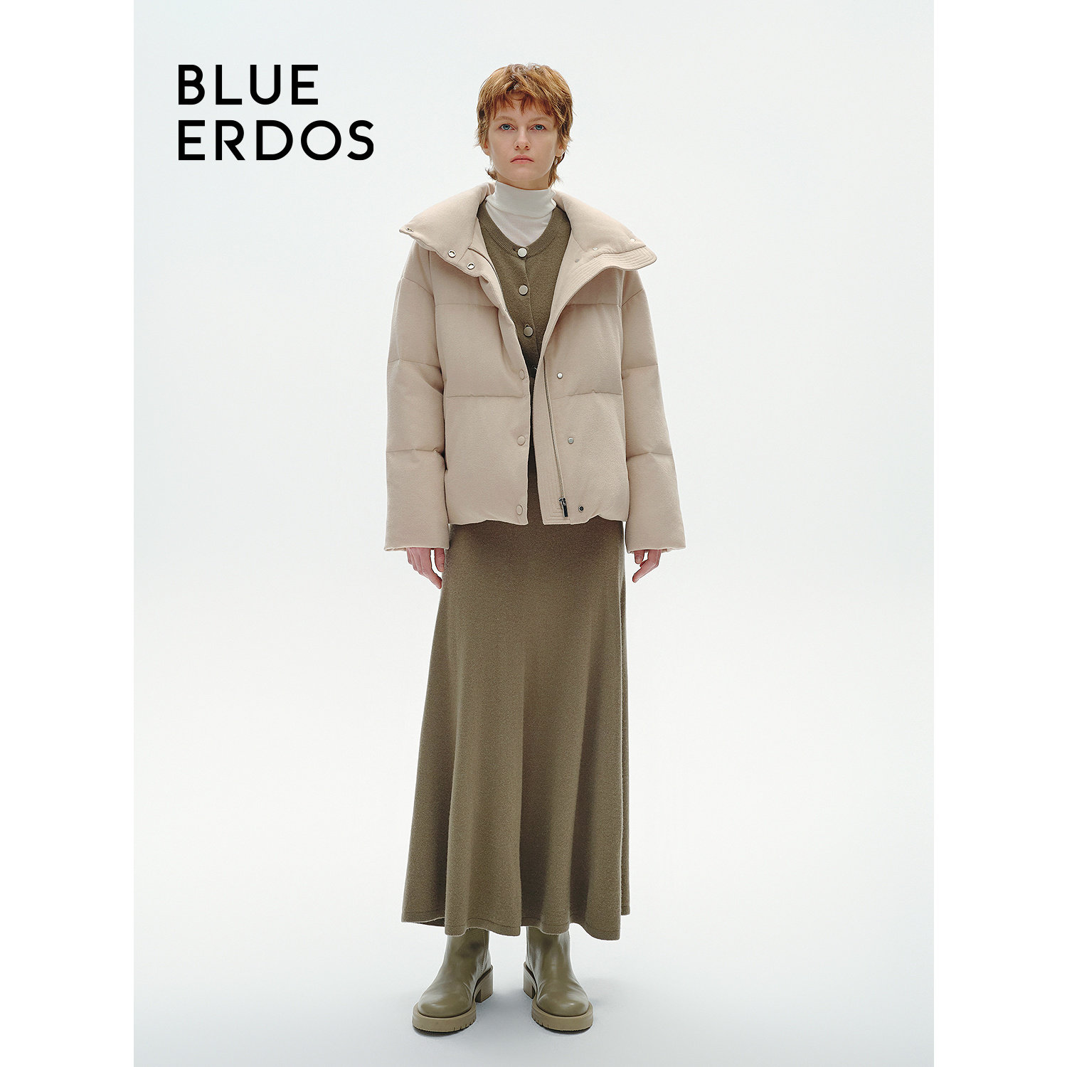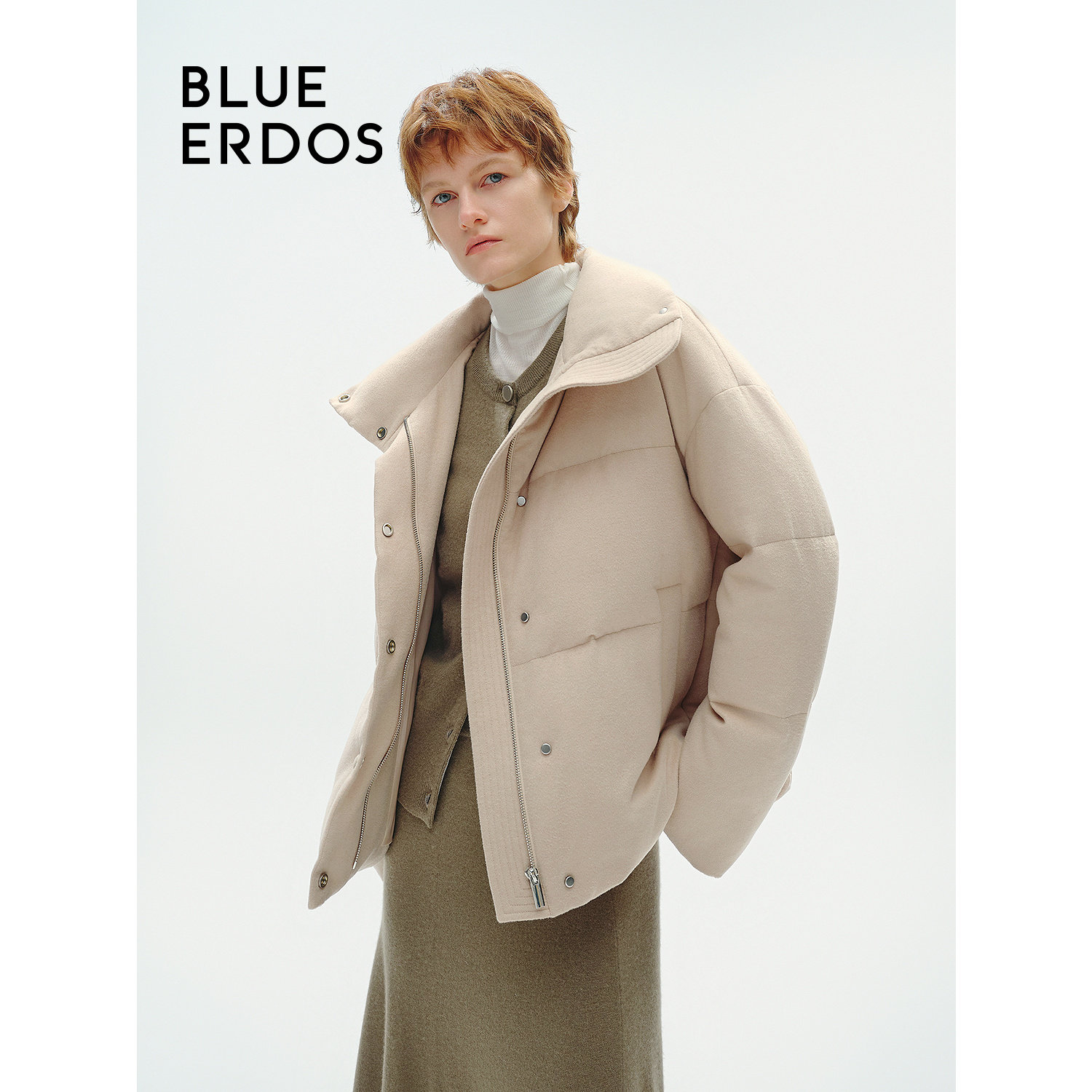 BLUE ERDOS 冬季立领保暖白鸭绒中长款羽绒服外套女B246JF007