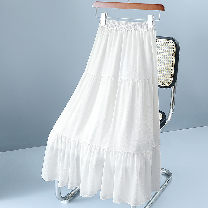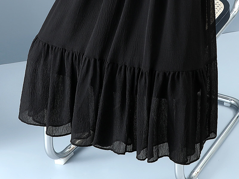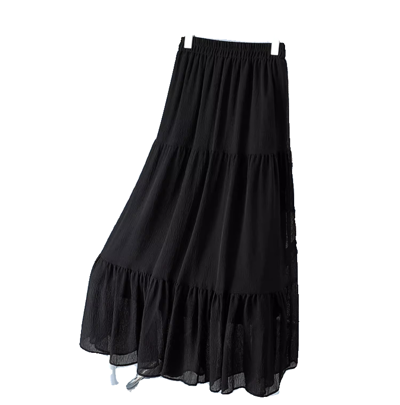 雪纺黑色半身裙女2023年夏季新款薄款中长款蛋糕裙显瘦高腰a裙子