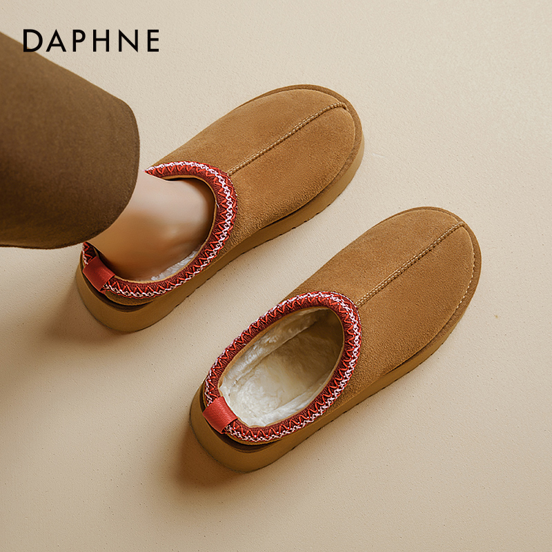 达芙妮厚底加绒雪地靴女冬季2025新款防滑棉靴毛毛靴加厚保暖棉鞋