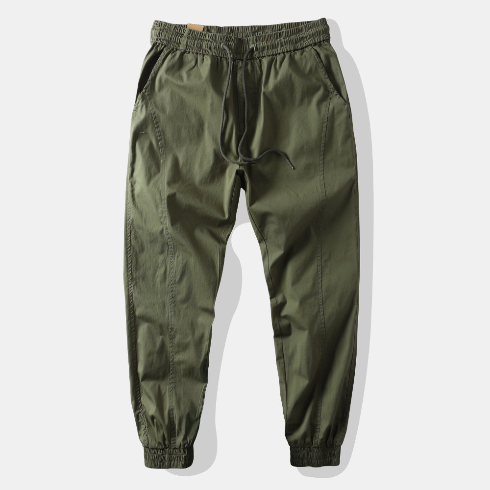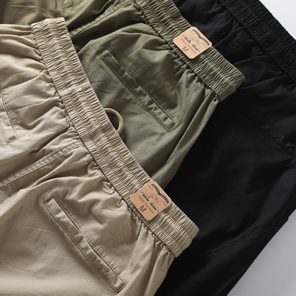 夏季薄款日系休闲工装裤直筒宽松束脚裤弹力透气小脚速干收脚松紧