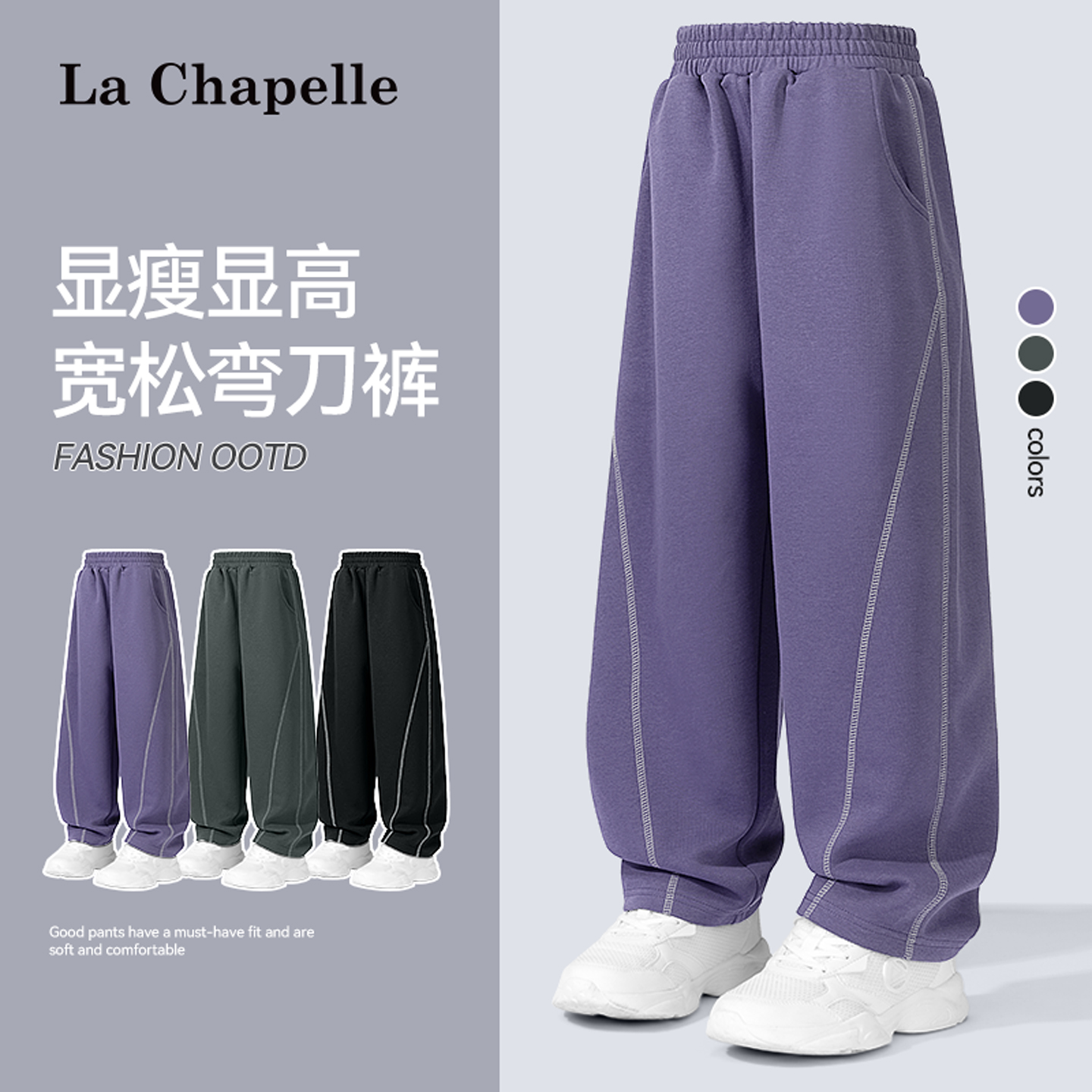 拉夏贝尔女童加绒裤子女大童薄绒长裤女孩秋冬装弯刀裤儿童运动裤