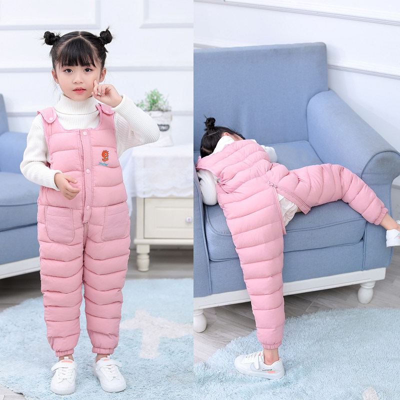 2021冬季儿童背带裤宝宝连体羽绒棉裤套装男童女童小孩加厚长棉裤