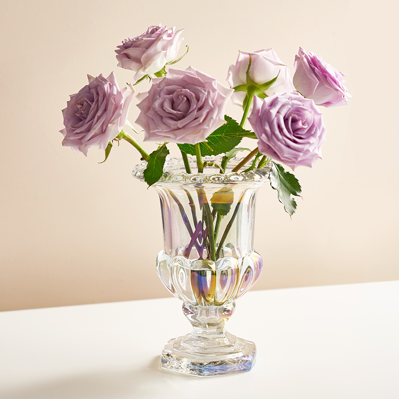 轻奢罗马高脚玻璃花瓶摆件透明水养鲜花玫瑰客厅餐桌插花装饰小众