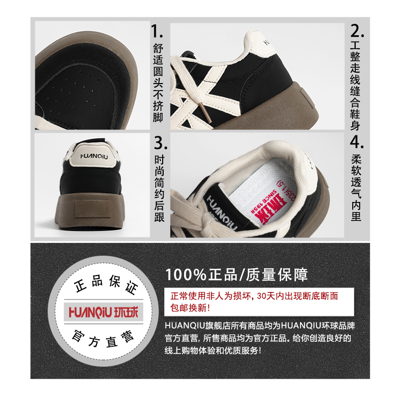 环球黑色德训鞋女2025新款秋季小个子厚底增高休闲板鞋复古小黑鞋