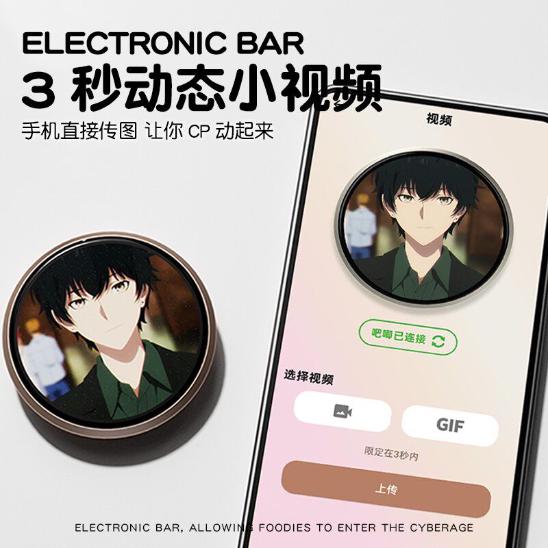 动态宝石角电子吧唧谷子二次元徽章游戏周边潮玩数显屏外出小挂件