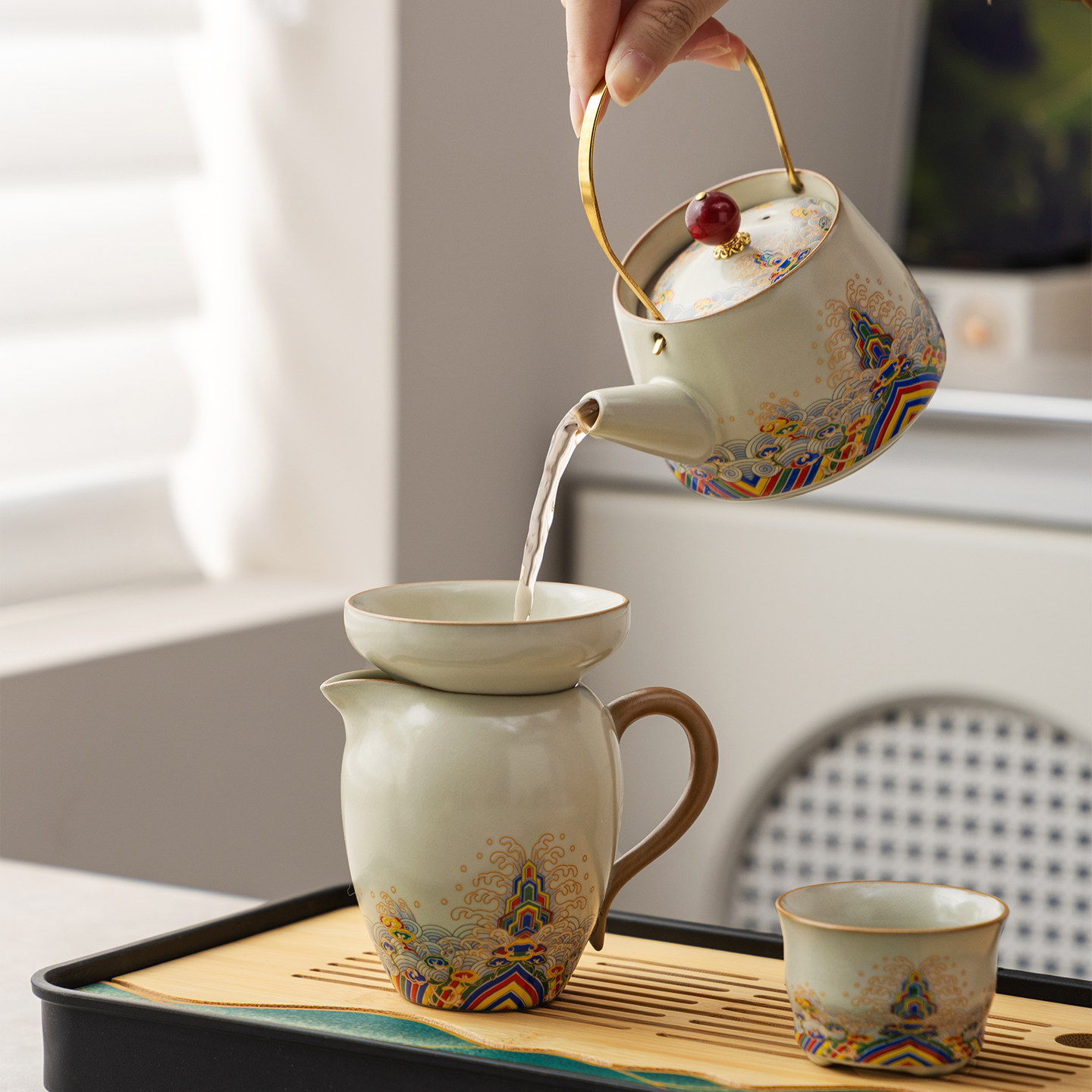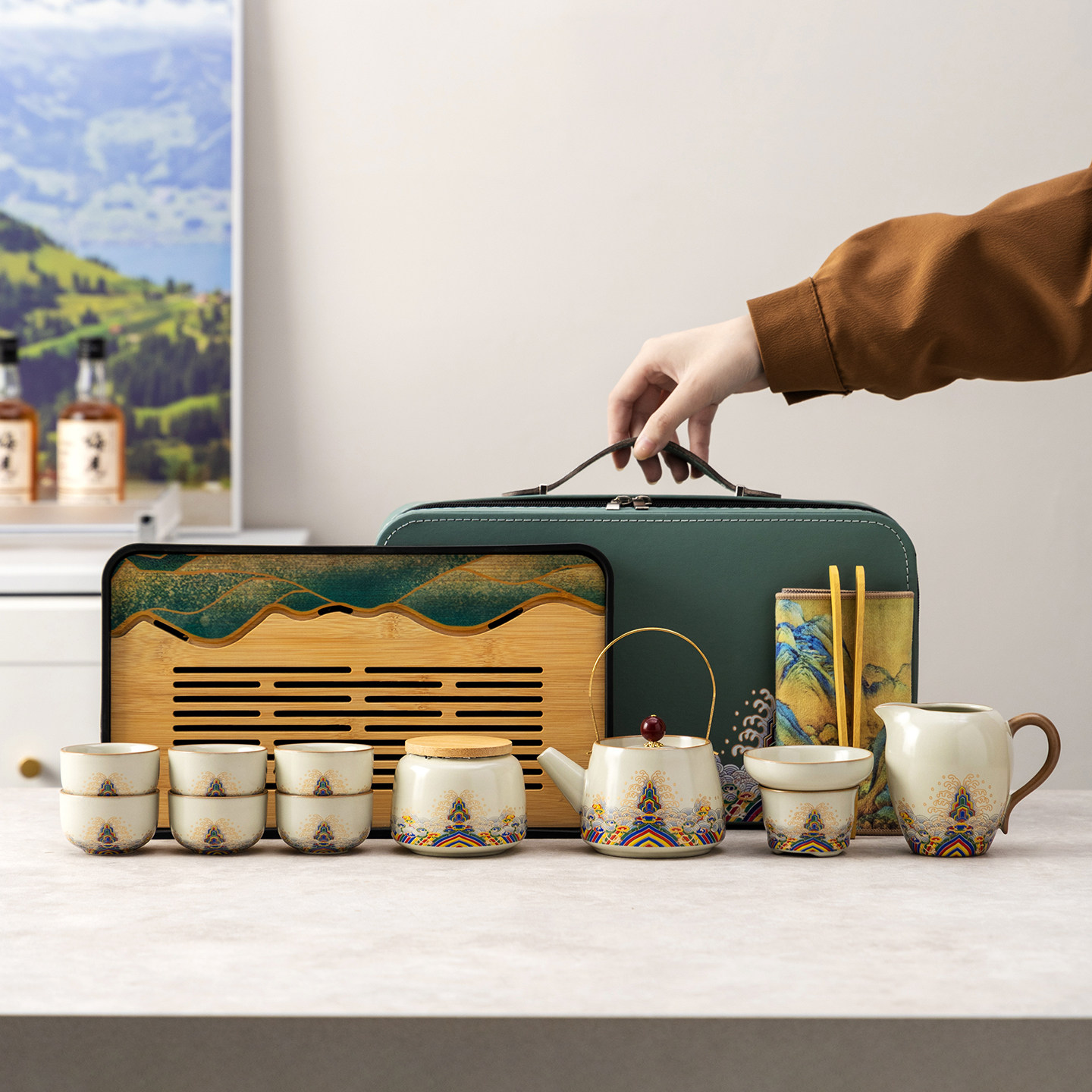 汝窑旅行陶瓷功夫茶具套装家用便携式户外露营泡茶壶盖碗茶杯茶盘