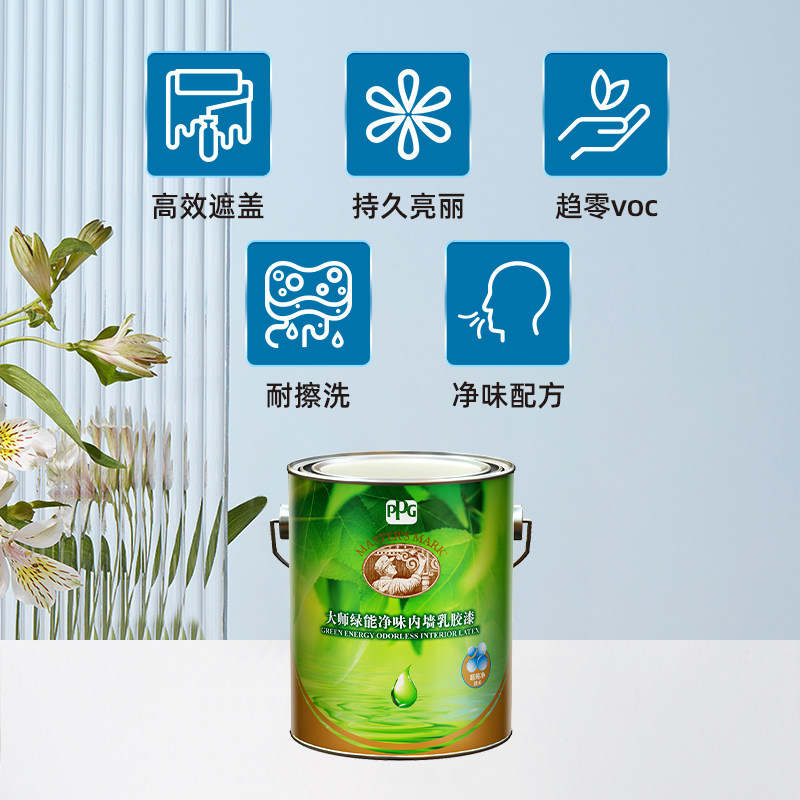 PPG大师漆 家用环保乳胶漆涂料墙面漆水性哑光油漆 绿能净味单桶