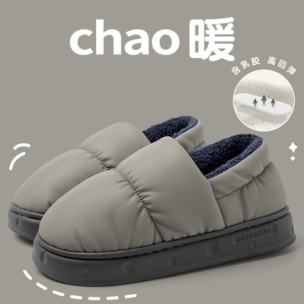 防水棉拖鞋男士秋冬季2025新款室内家居软底家用保暖毛绒情侣棉拖