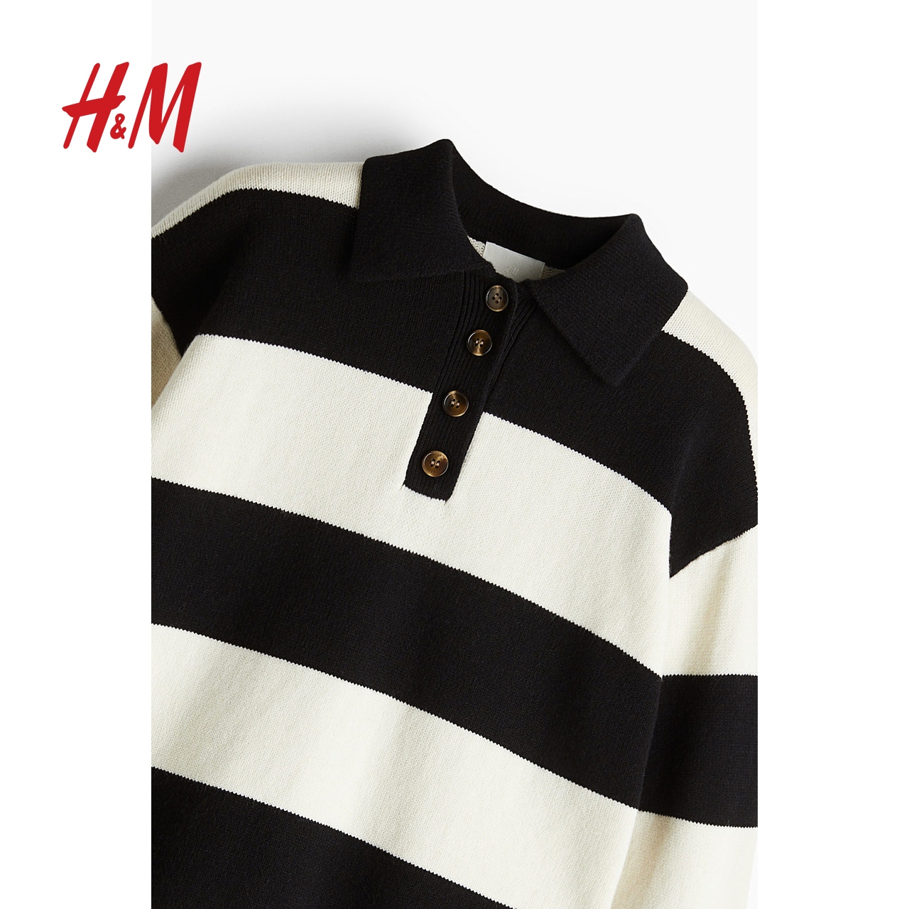 HM女装毛针织衫秋季宽松细针织条纹长袖套头衫1257621