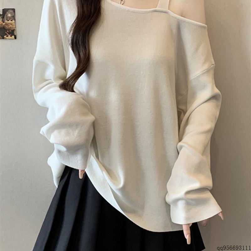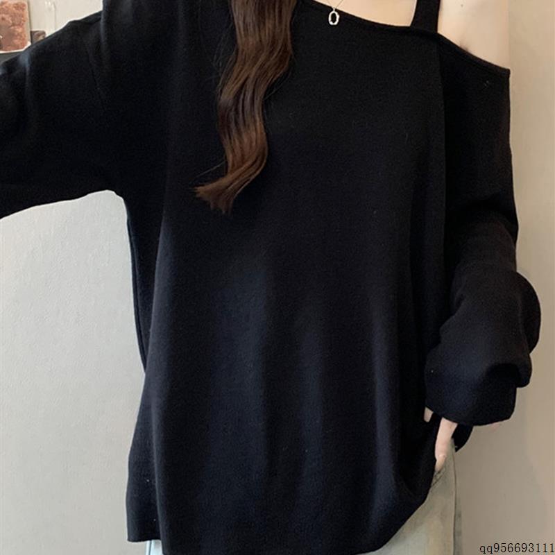 设计感露肩吊带针织衫女2025秋季大码胖mm宽松显瘦遮肚打底衫上衣