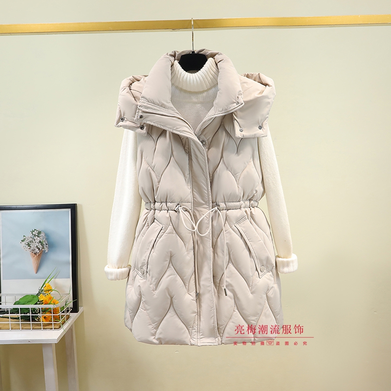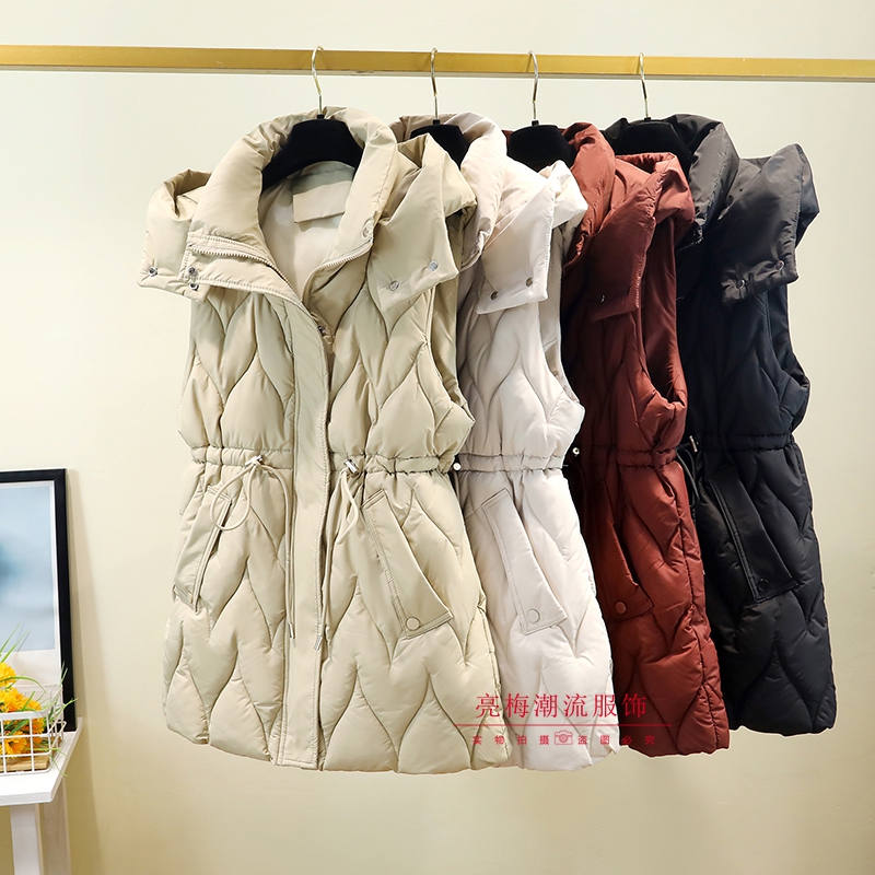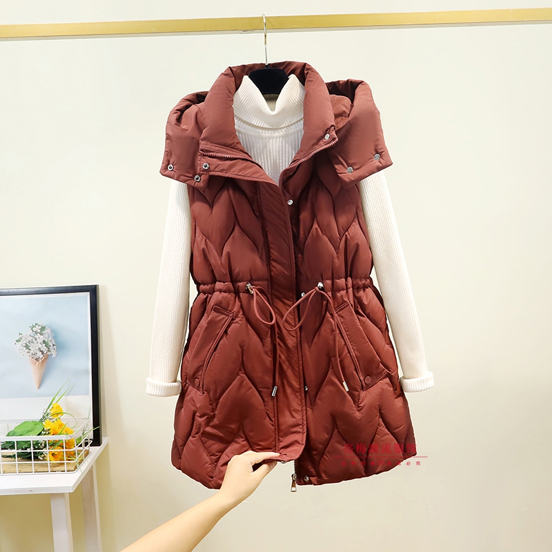 新款安哥拉红棉马甲女可拆卸帽中长款修身收腰棉背心坎肩外套秋冬