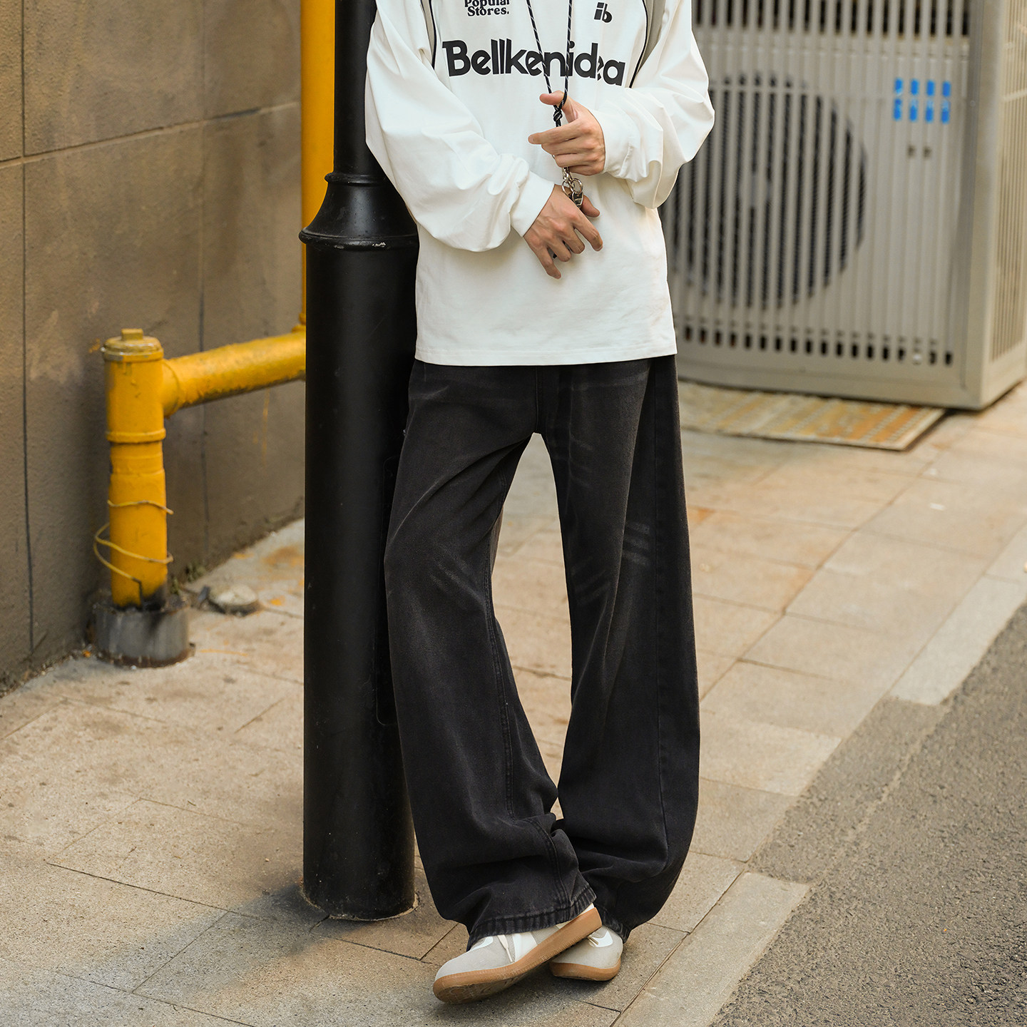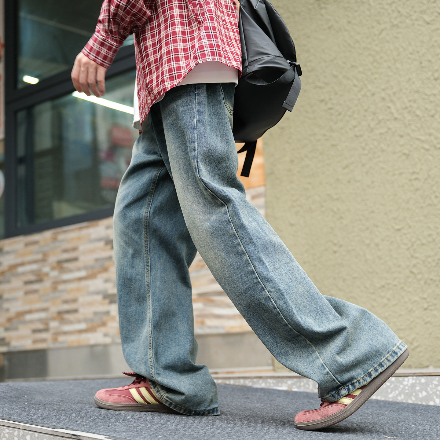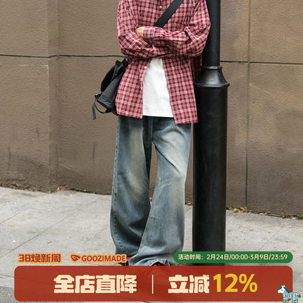GOOZI MADE 水洗渐变牛仔裤男春秋cleanfit美式复古微喇直筒裤子