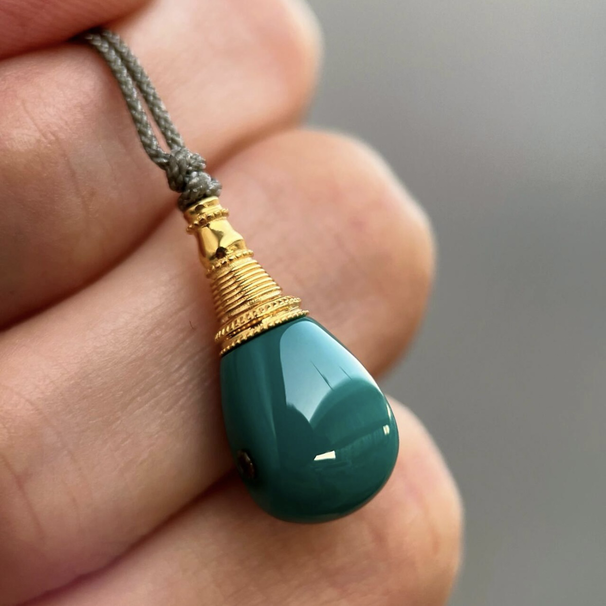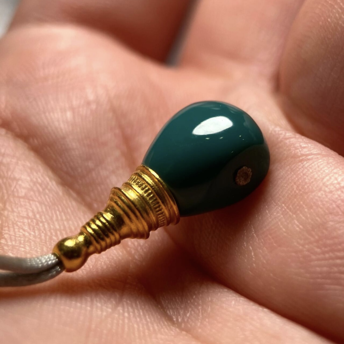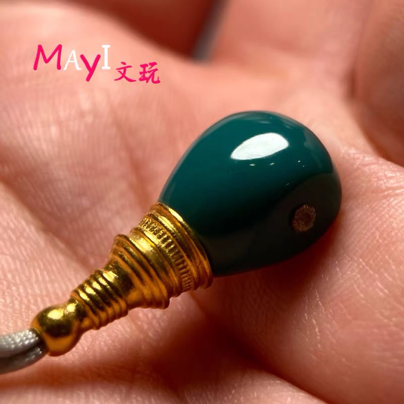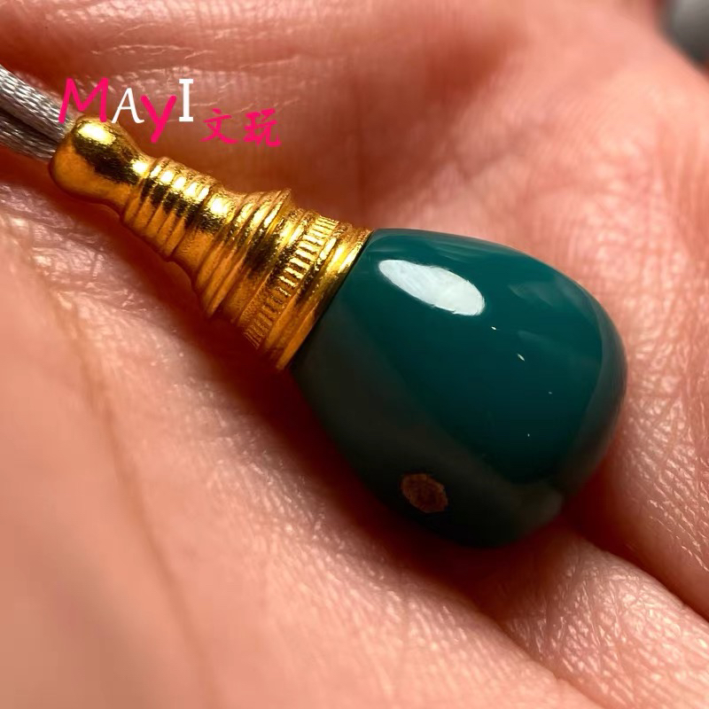 丫角山油绿玉化绿松石三通18 k金佛塔手串佛珠金刚星月菩提配饰件