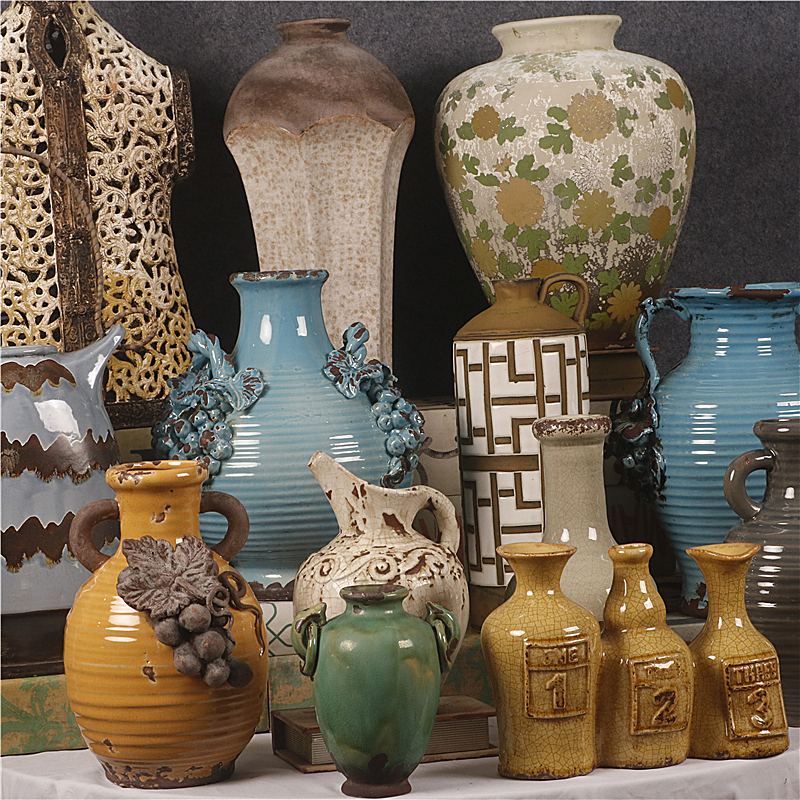 欧式复古做旧陶瓷釉变花瓶花器客厅民宿玄关创意摄影装饰道具摆件