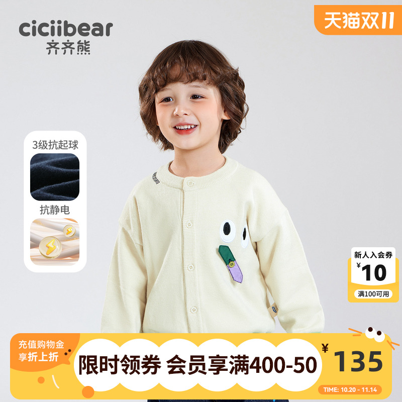 【抗静电抗起球】齐齐熊男童毛衣开衫春秋款儿童外套宝宝针织衫潮