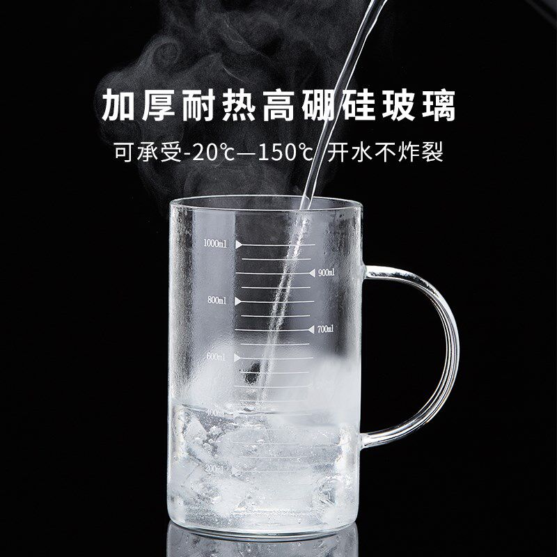 玻璃杯带刻度计量杯耐高温带把喝水家用微波炉牛奶果汁早餐烘焙杯