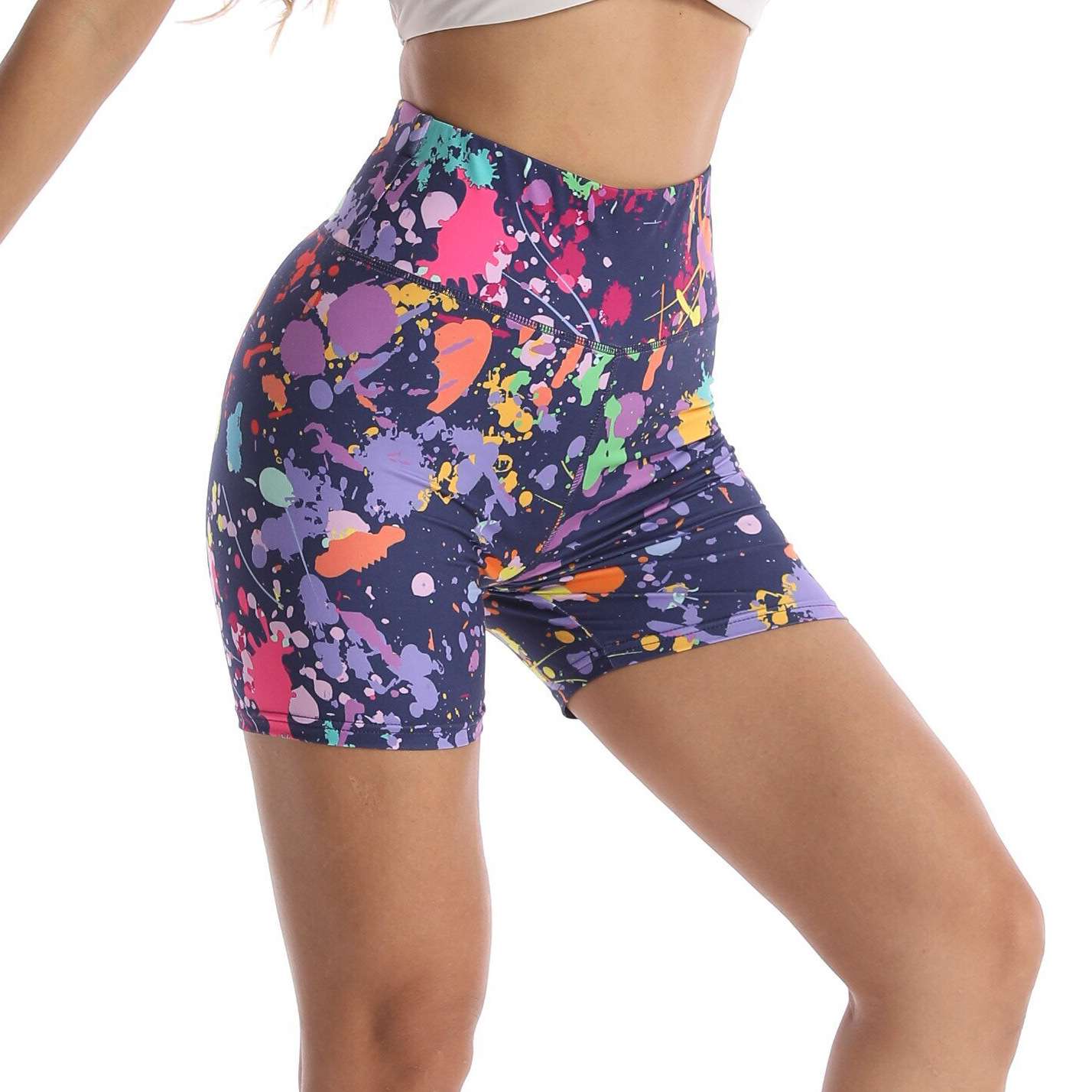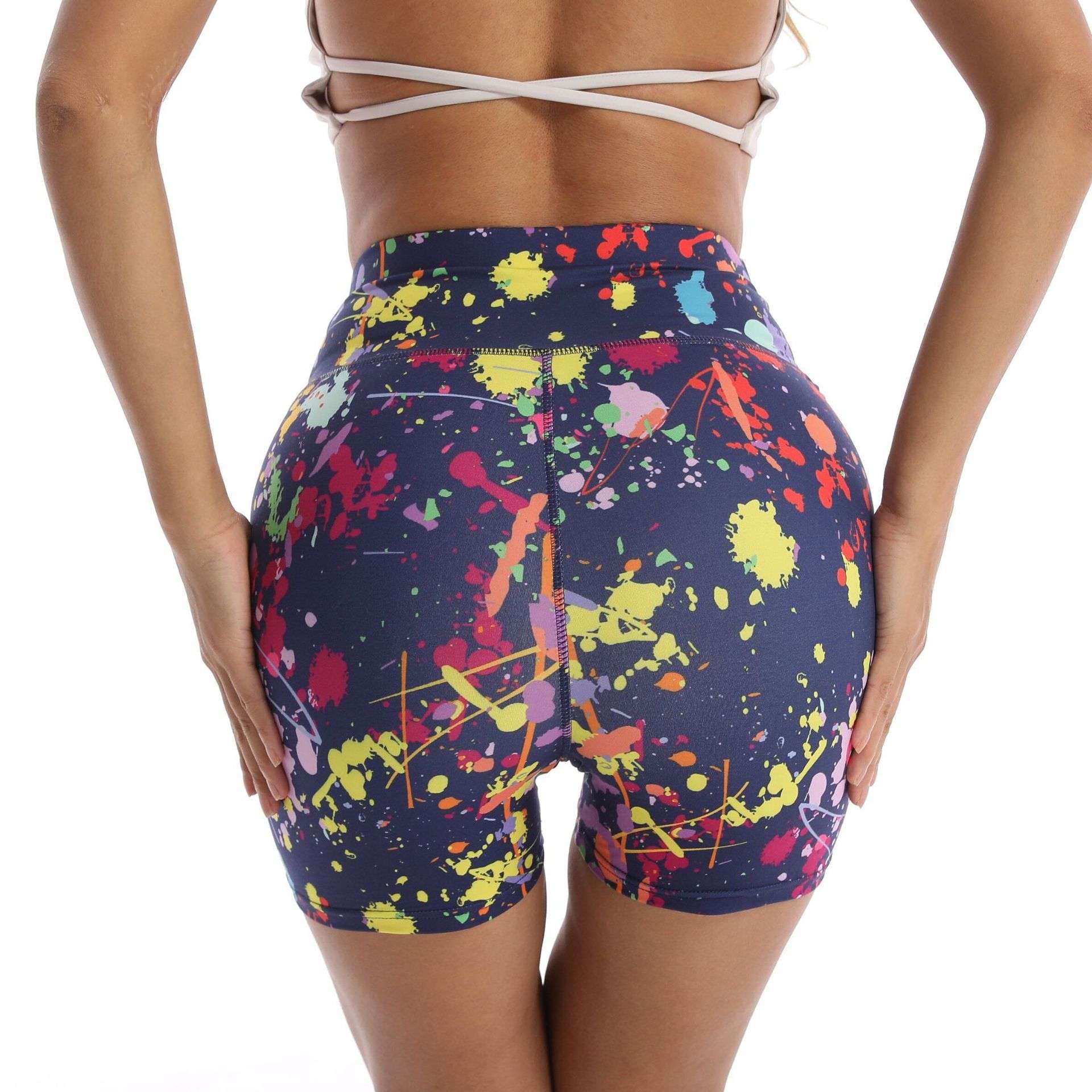 欧美印花高腰瑜伽短裤高弹收腹提臀健身女跑步运动五分裤