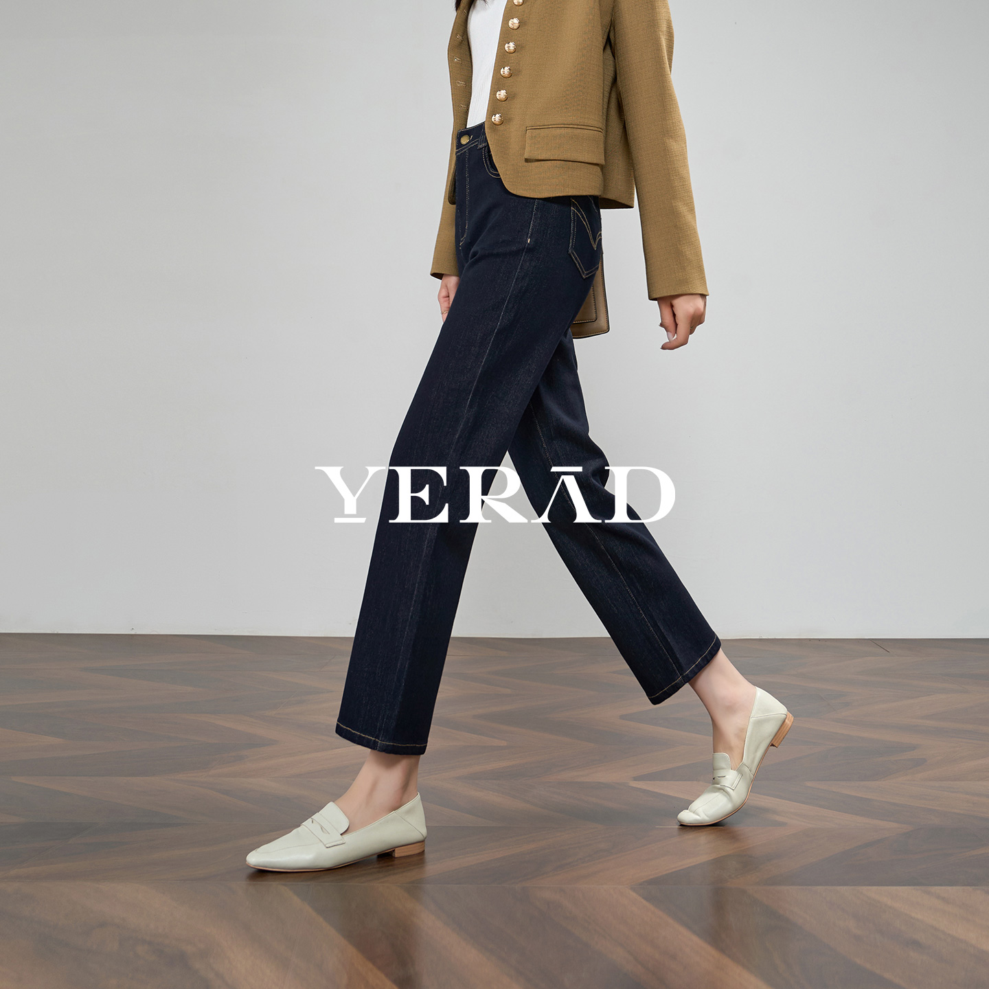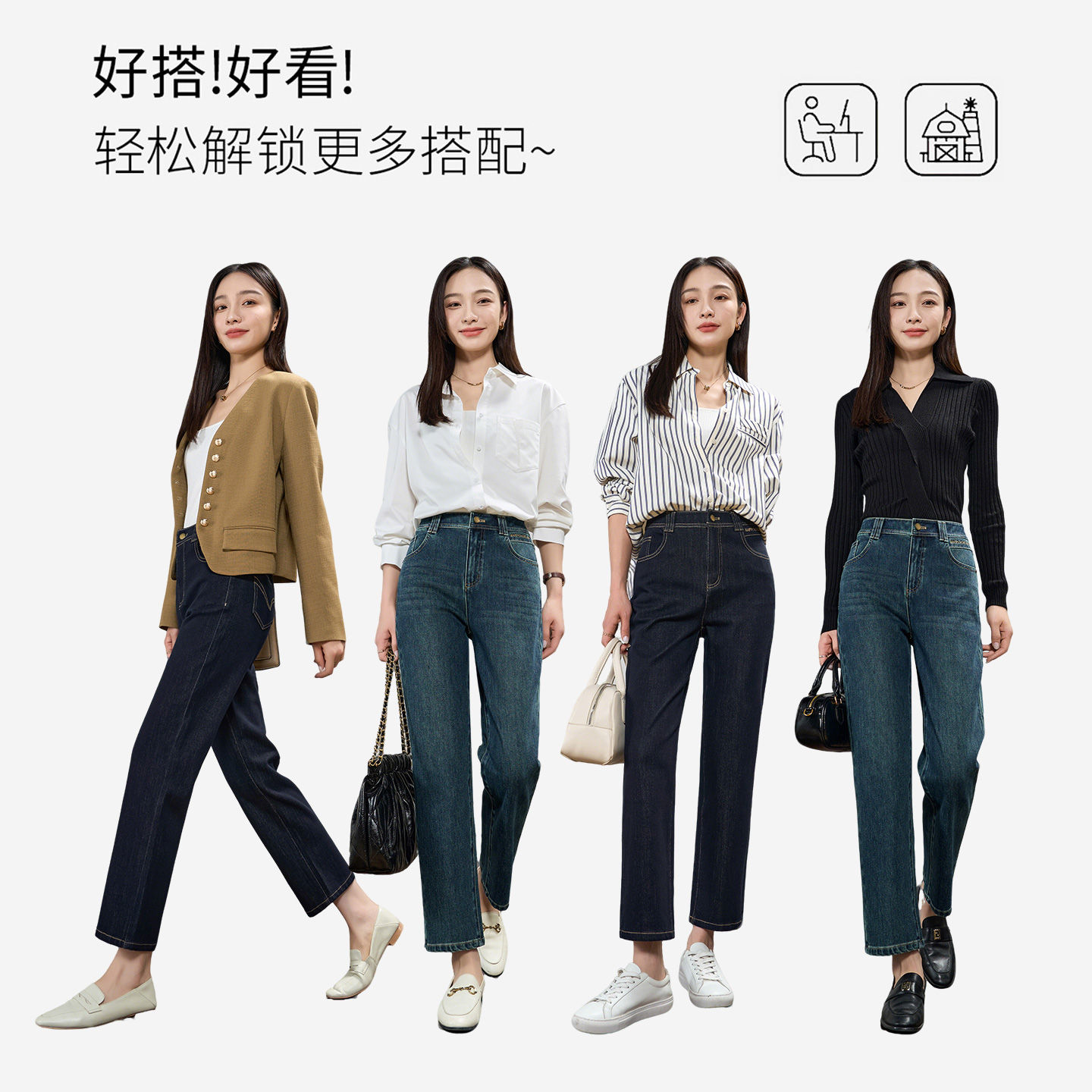 娅丽达弹力九分直筒牛仔裤女2025新款小个子女裤秋季休闲法棍裤潮