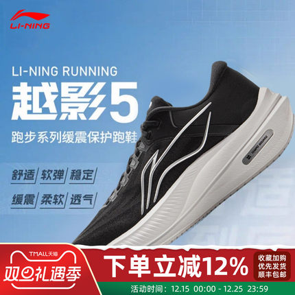 李宁越影5跑步鞋男子2025秋季上新缓震保护透气轻便休闲运动跑鞋