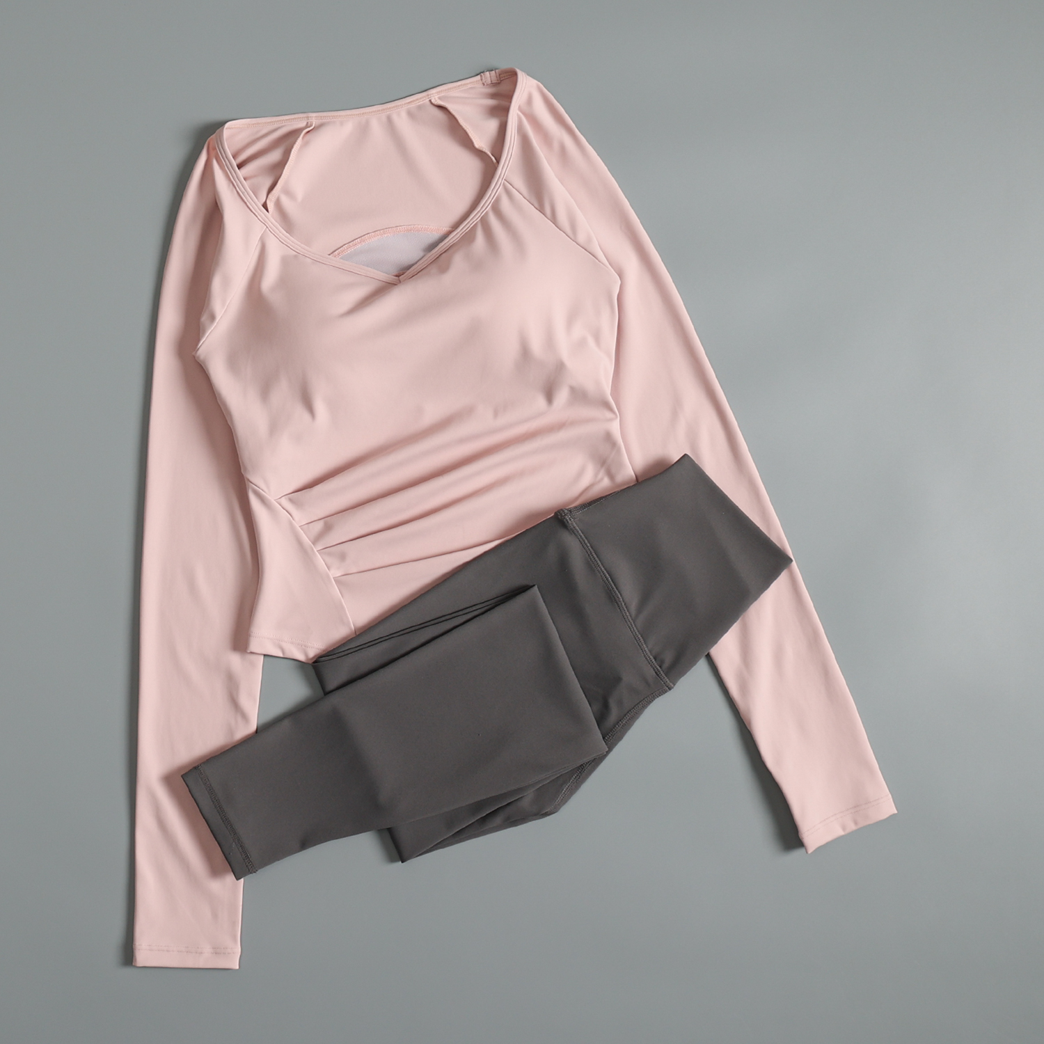 瑜伽服套装普拉提高级感绝美跑步运动上衣女带胸垫秋冬健身服长袖