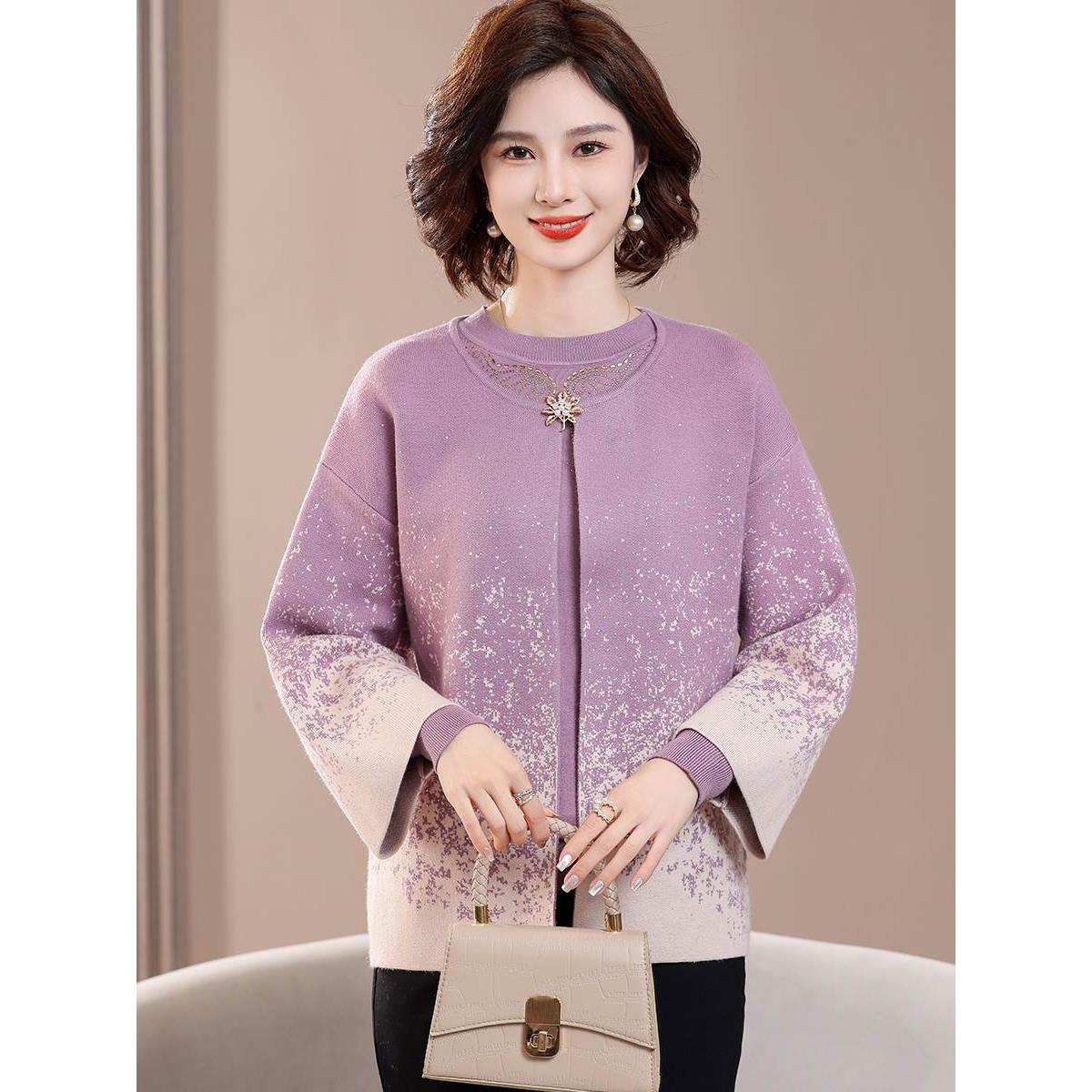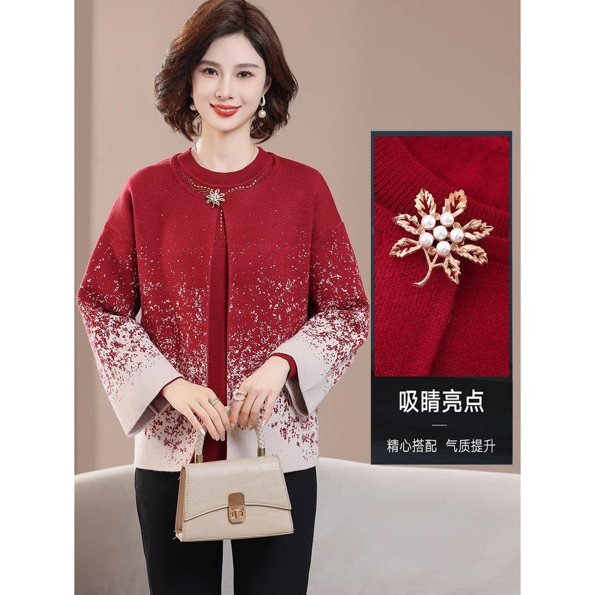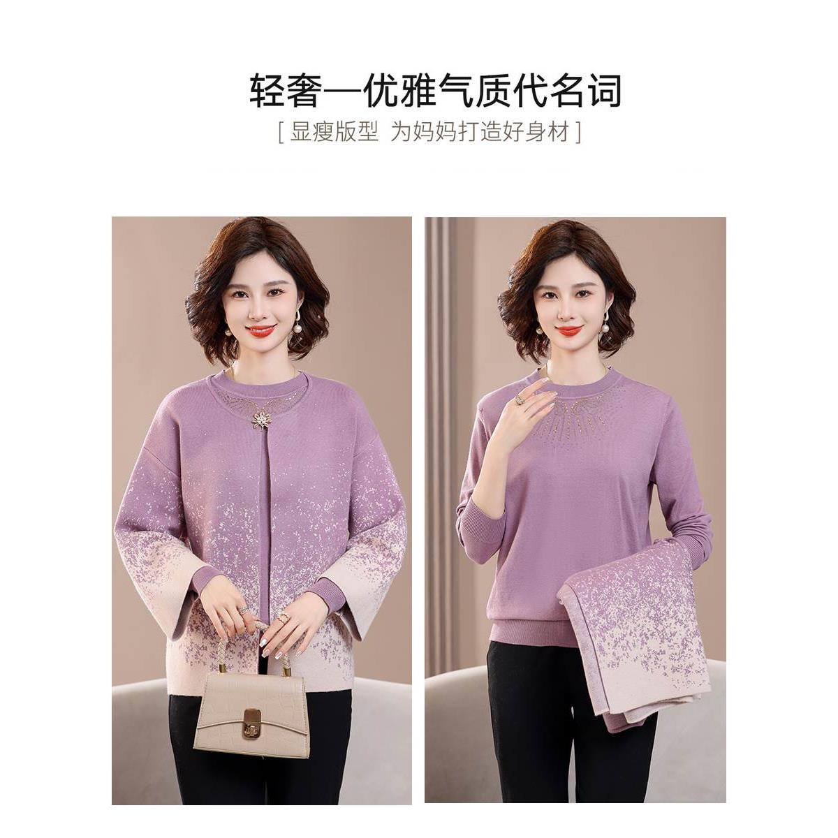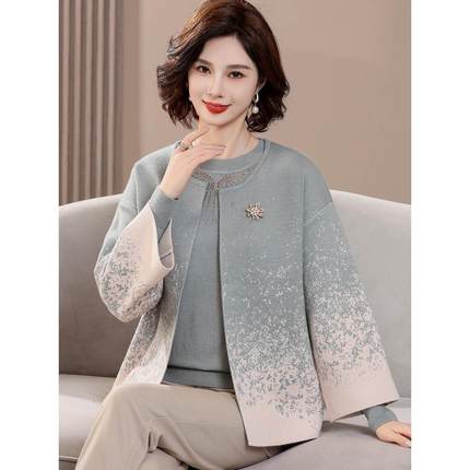妈妈春装洋气针织开衫毛衣洋气外套中老年人女秋冬季上衣两件套装