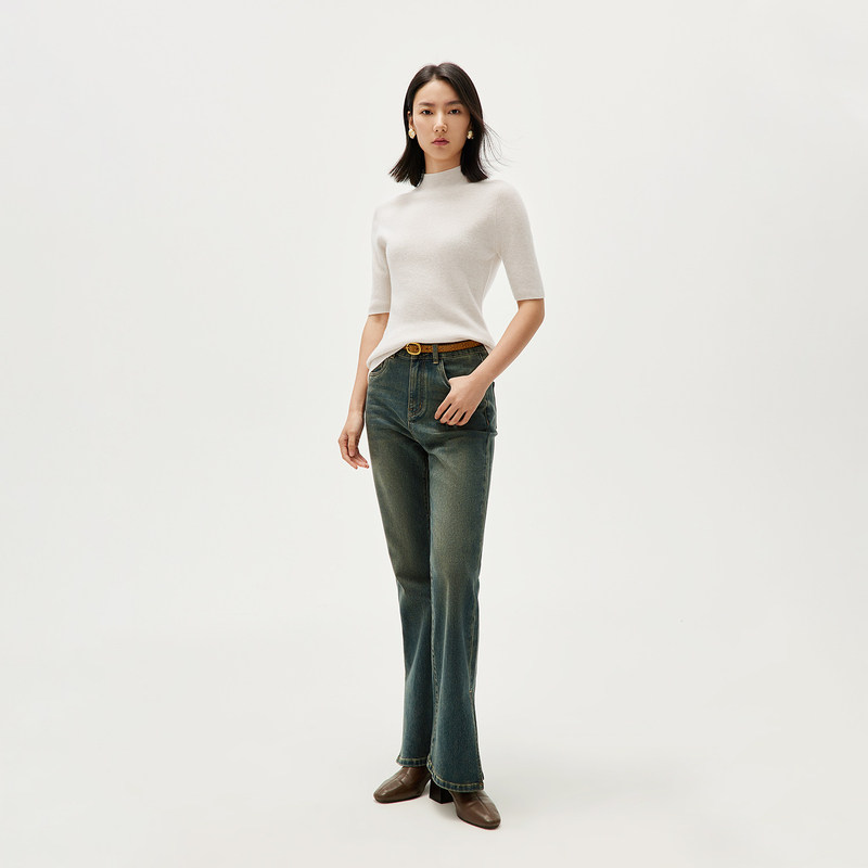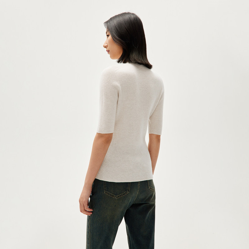 【纯羊毛】HLA/海澜之家短袖针织衫秋新款半高领黑色套头毛衣女装