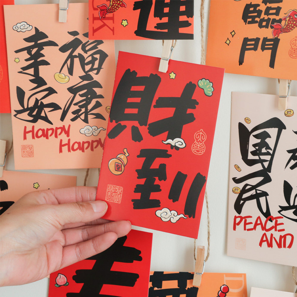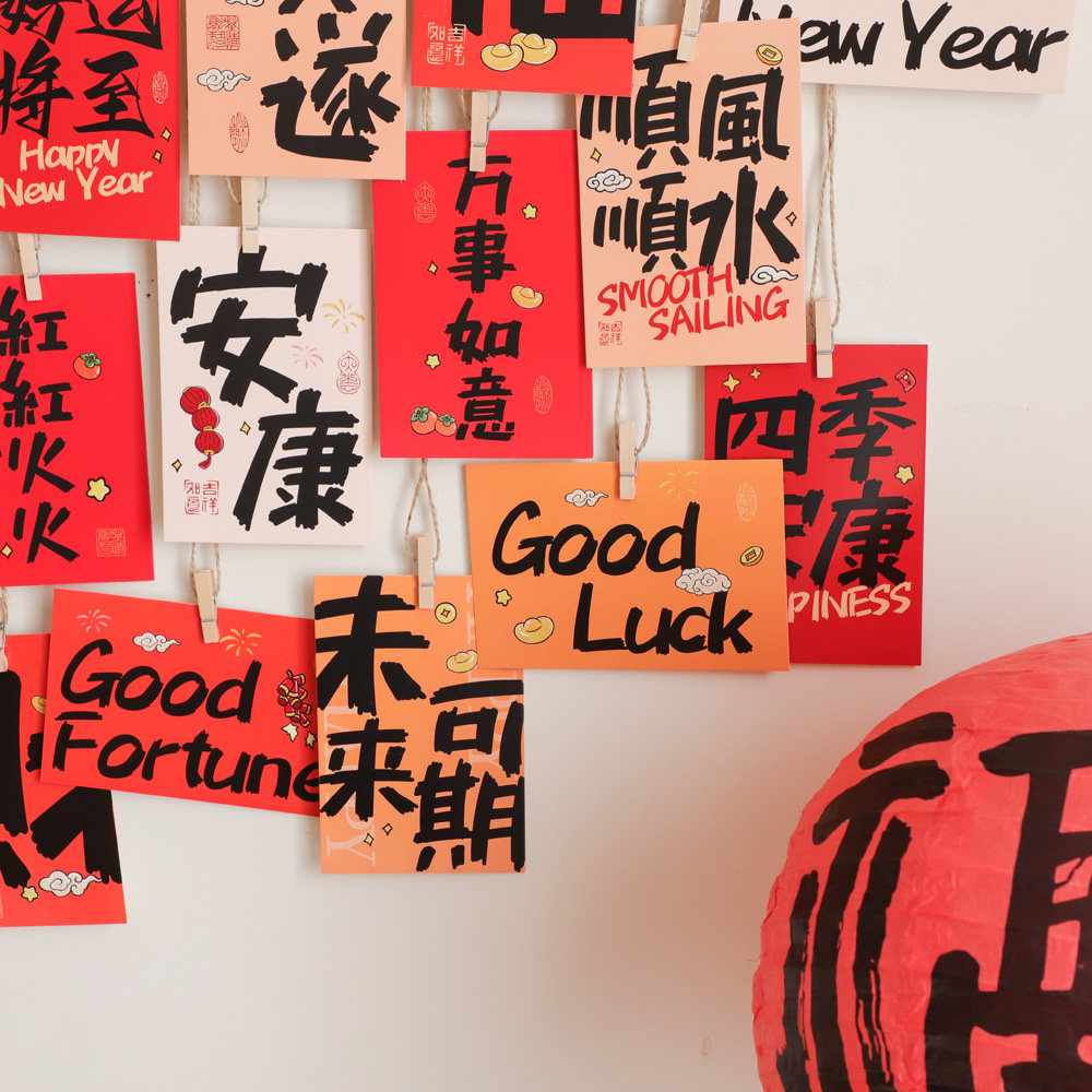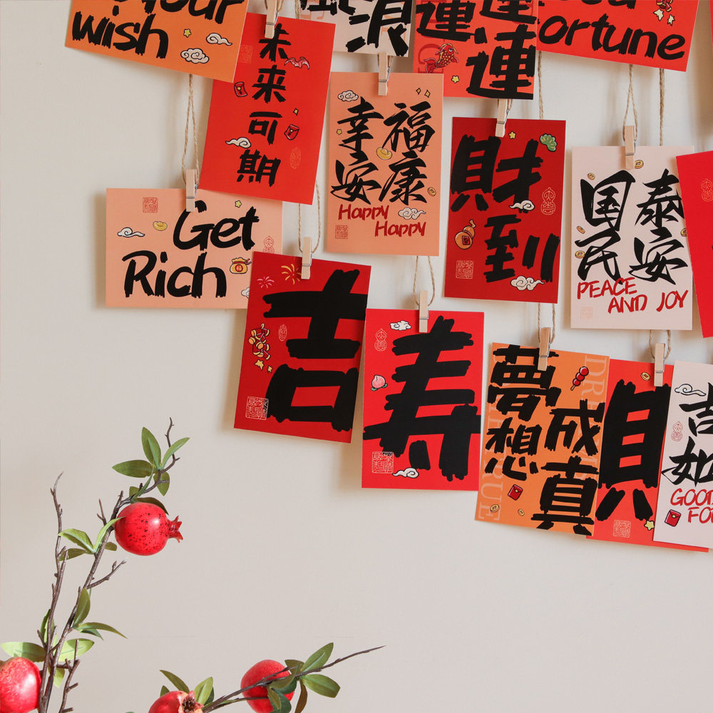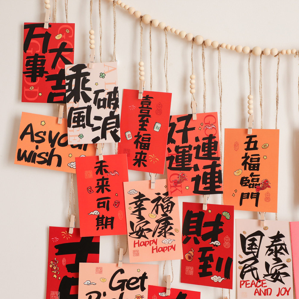 照片收纳展示麻绳木夹串木珠新中式喜庆卡片新年乔迁背景墙布置