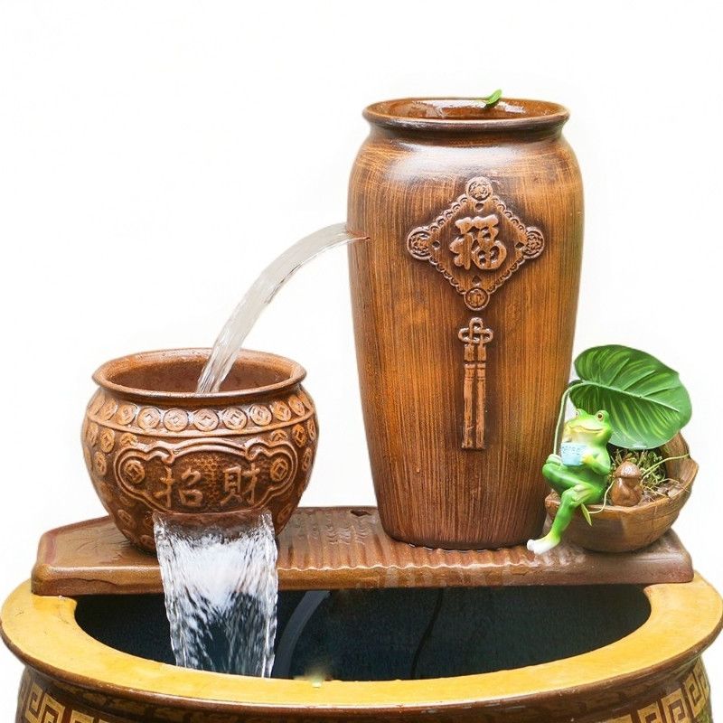 LS-349古法鱼缸养鱼瀑布流水罐过滤增氧造景生态瀑布陶瓷流水循环
