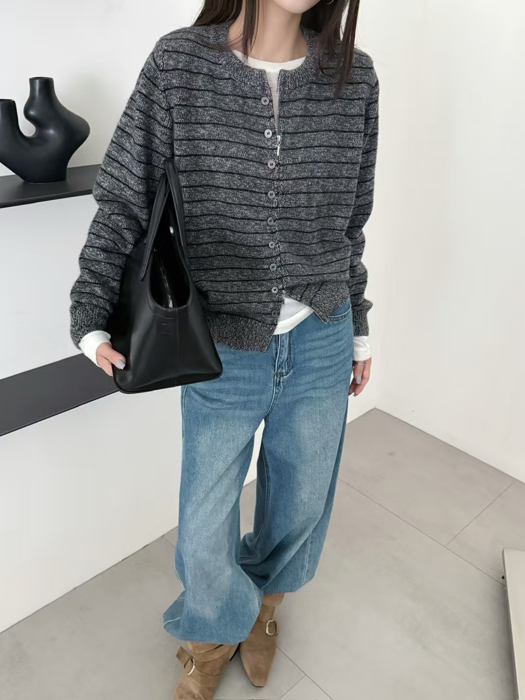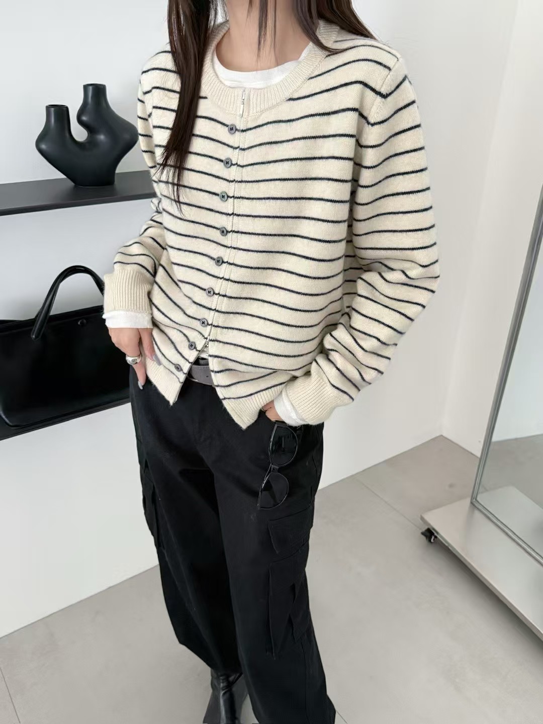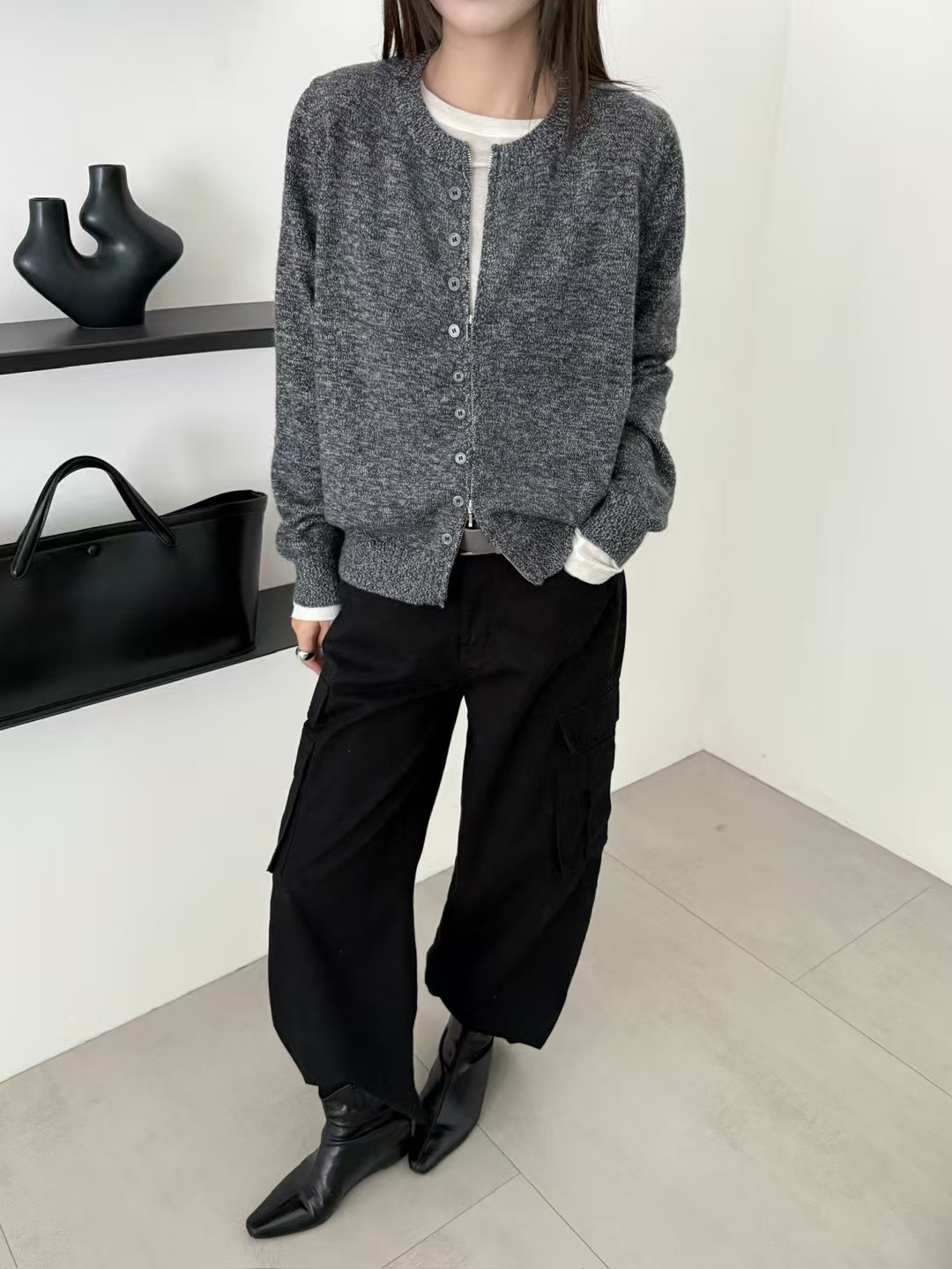 2025新款韩版宽松休闲百搭圆领针织开衫女设计感小众毛衣外套上衣