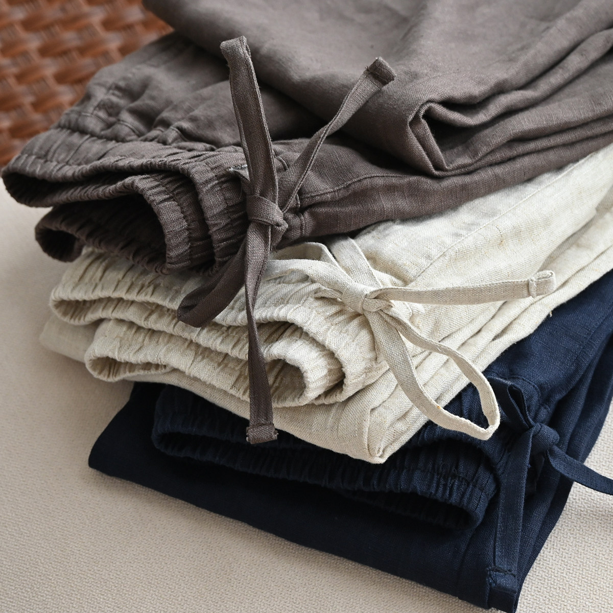 9支全亚麻 男士基础款长裤 透气高腰休闲裤子 山东网店 夏款男装