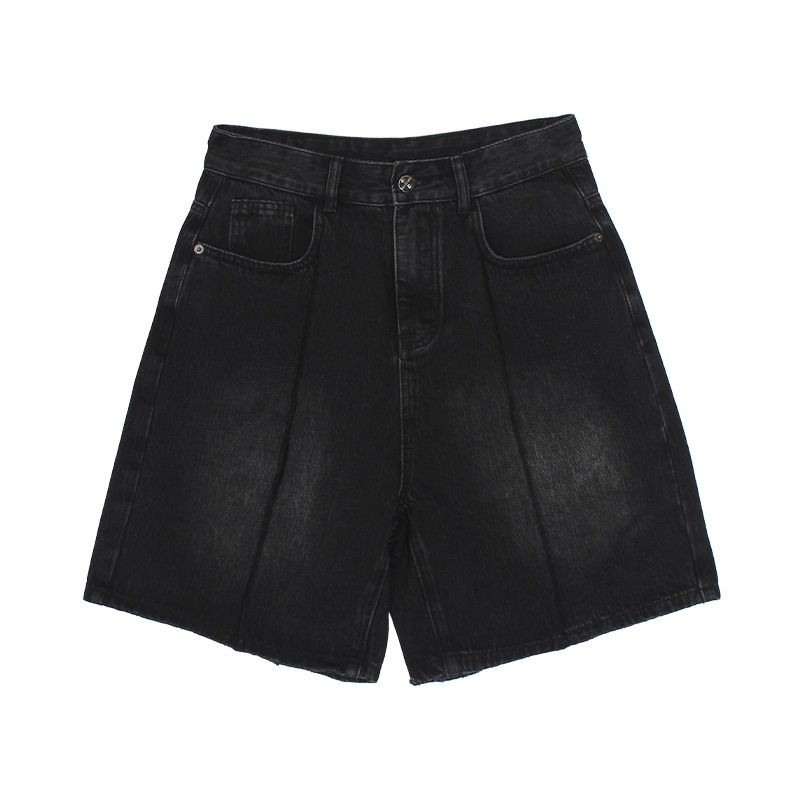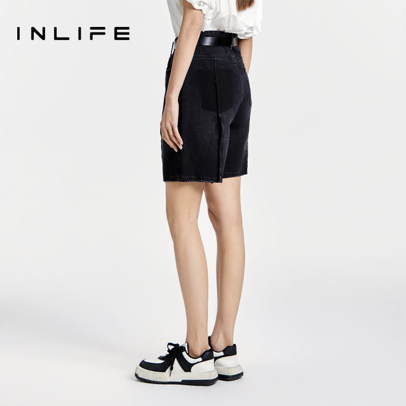 伊纳芙高腰直筒牛仔短裤女夏季新款宽松显瘦设计感阔腿裤五分热裤