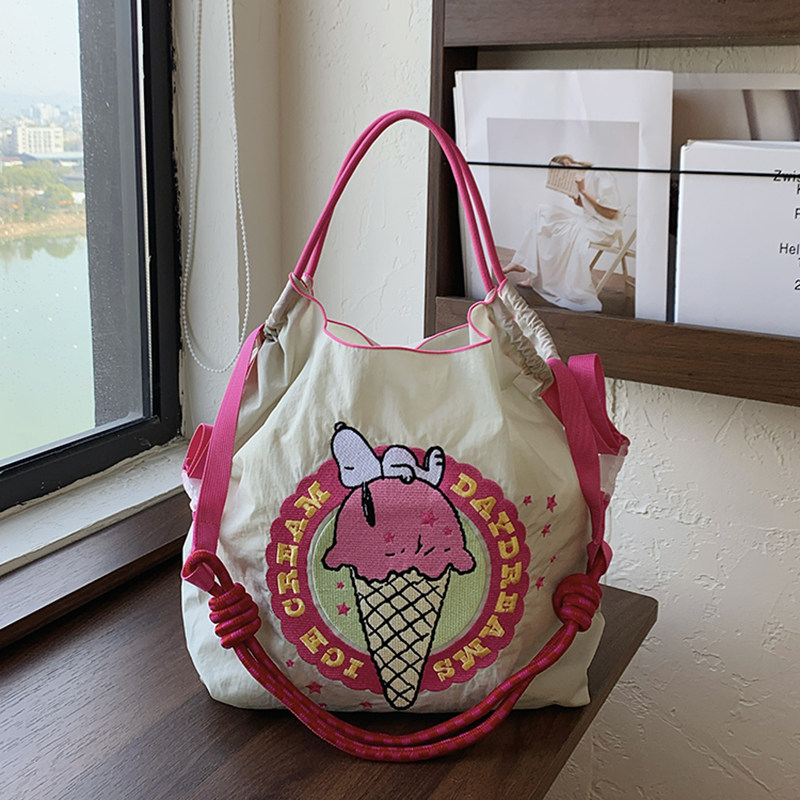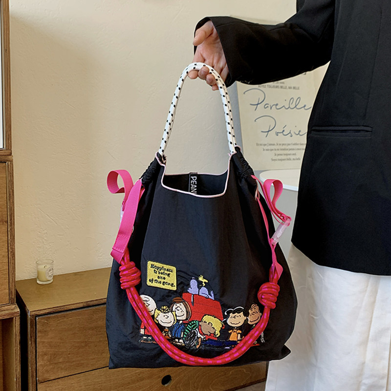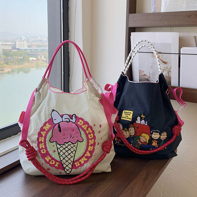 【正版】史努比联名2025新款刺绣购物袋卡通通勤大容量单肩斜挎包