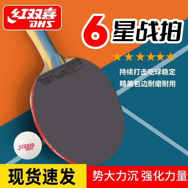 红双喜乒乓球拍5星6星天极蓝横拍直拍狂飚单拍专业球拍高弹成品拍