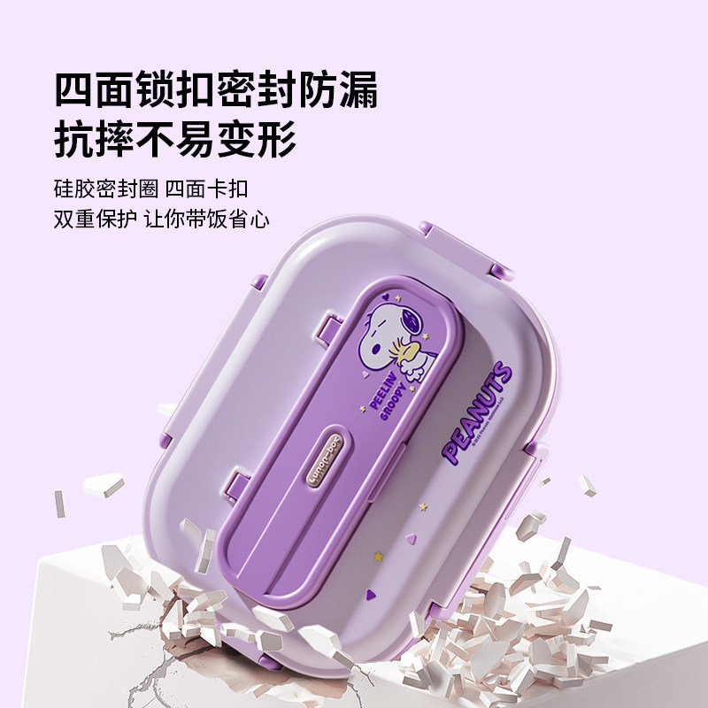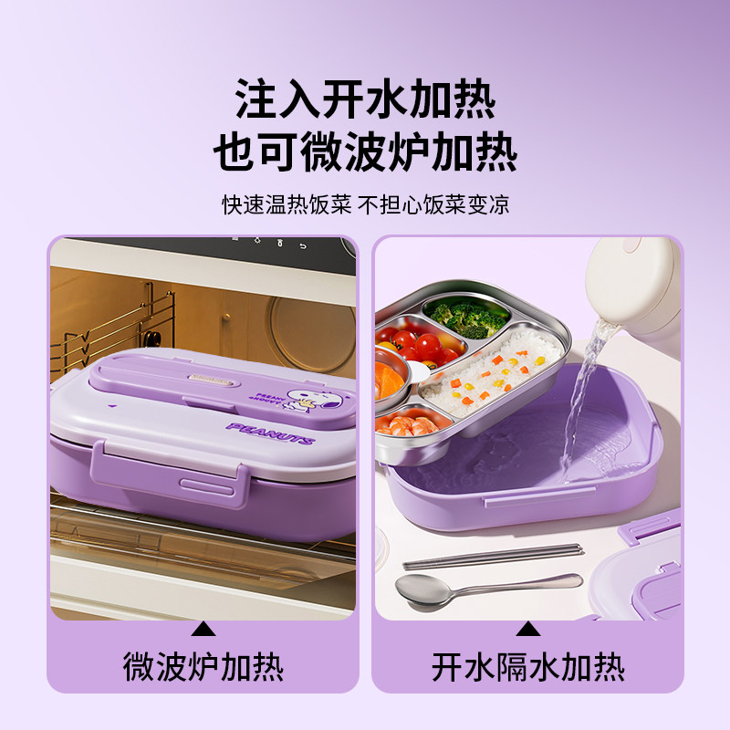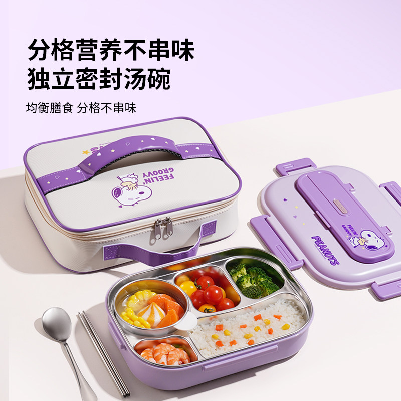 史努比儿童保温饭盒初中小学生上学专用一年级女孩分格不锈钢餐盒