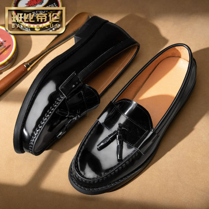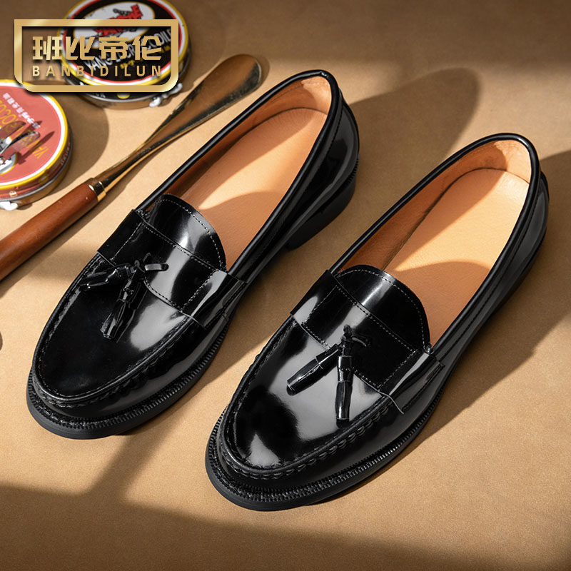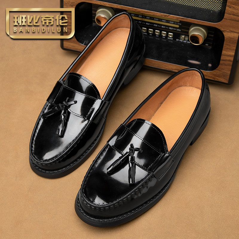 漆皮一脚蹬休闲皮鞋男商务英伦透气手工软底真皮乐福鞋男士懒人鞋