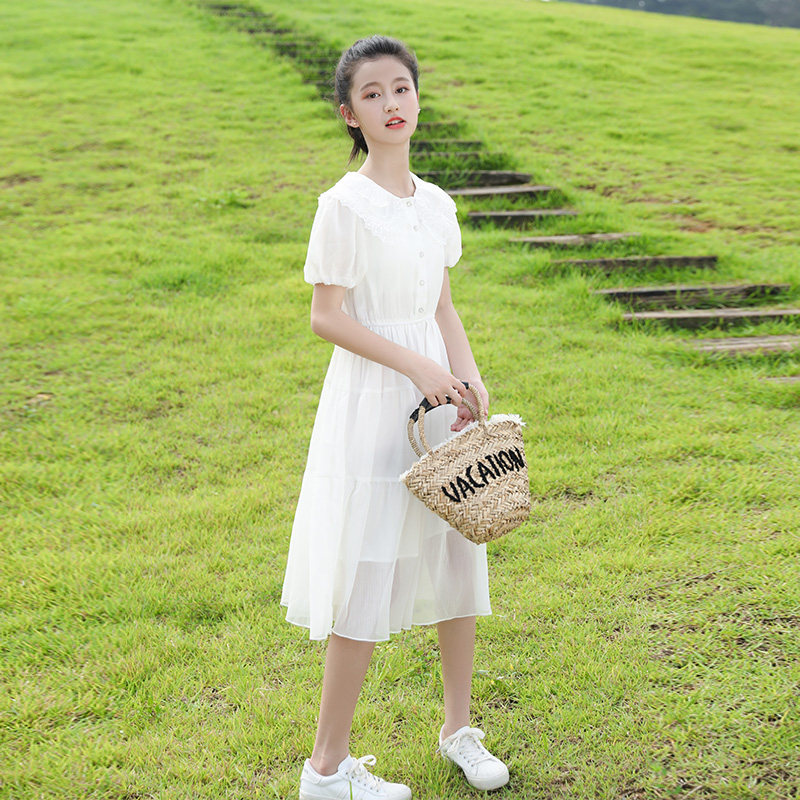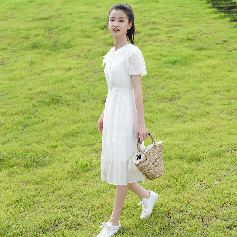 女童连衣裙夏季2025新款女孩韩版洋气儿童裙子女大童夏装白色长裙
