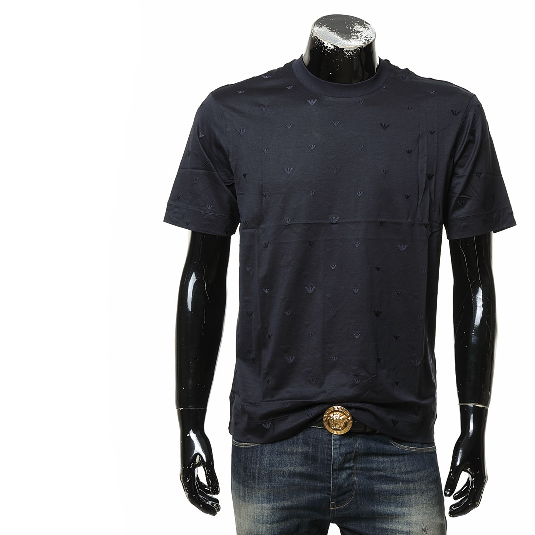 Armani/阿玛尼EA 男士刺绣鹰标丝光棉短袖T恤 EM001400 AF10017