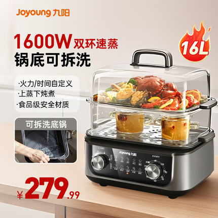 九阳电蒸锅多功能家用多层蒸煮一体锅不锈钢三层大容量可拆洗