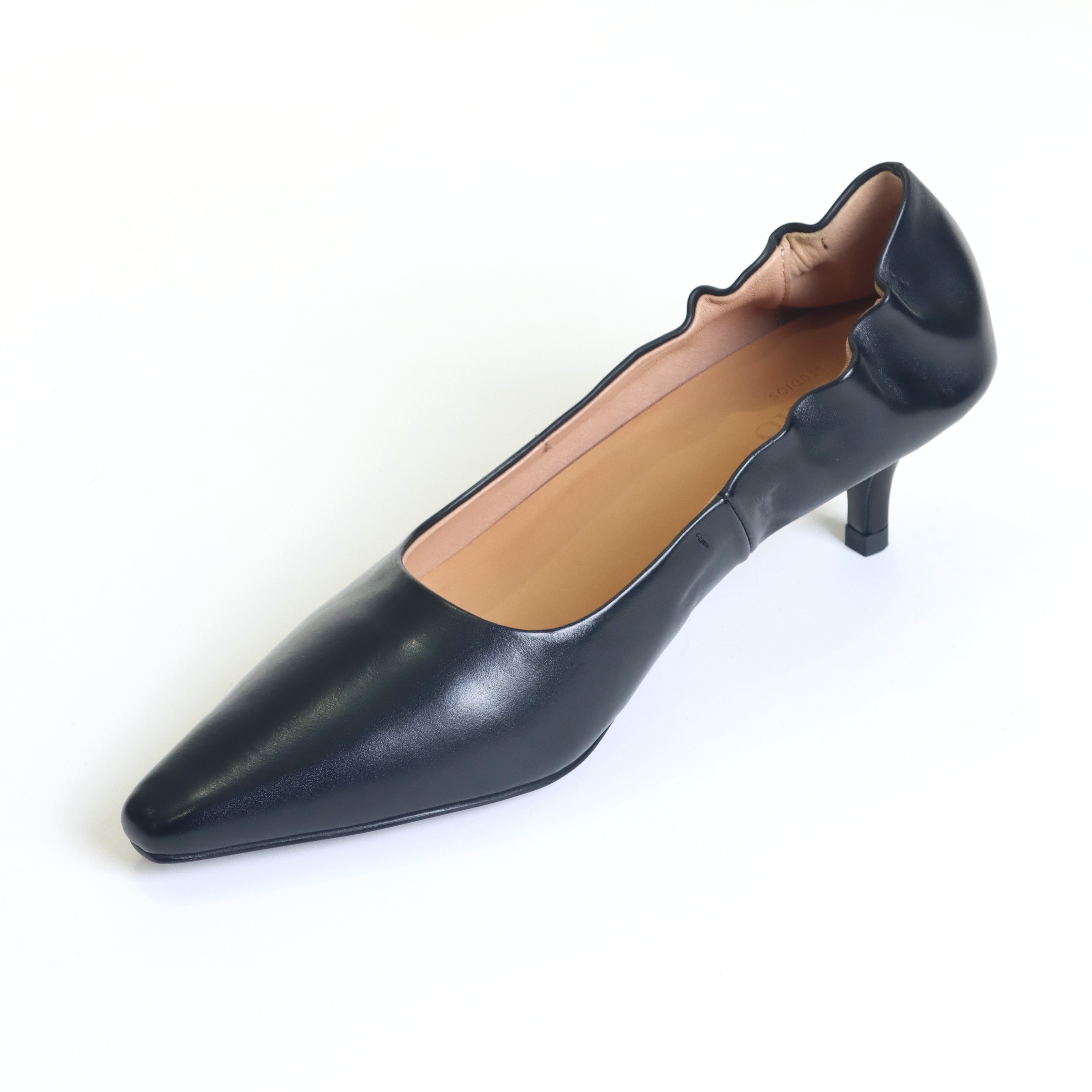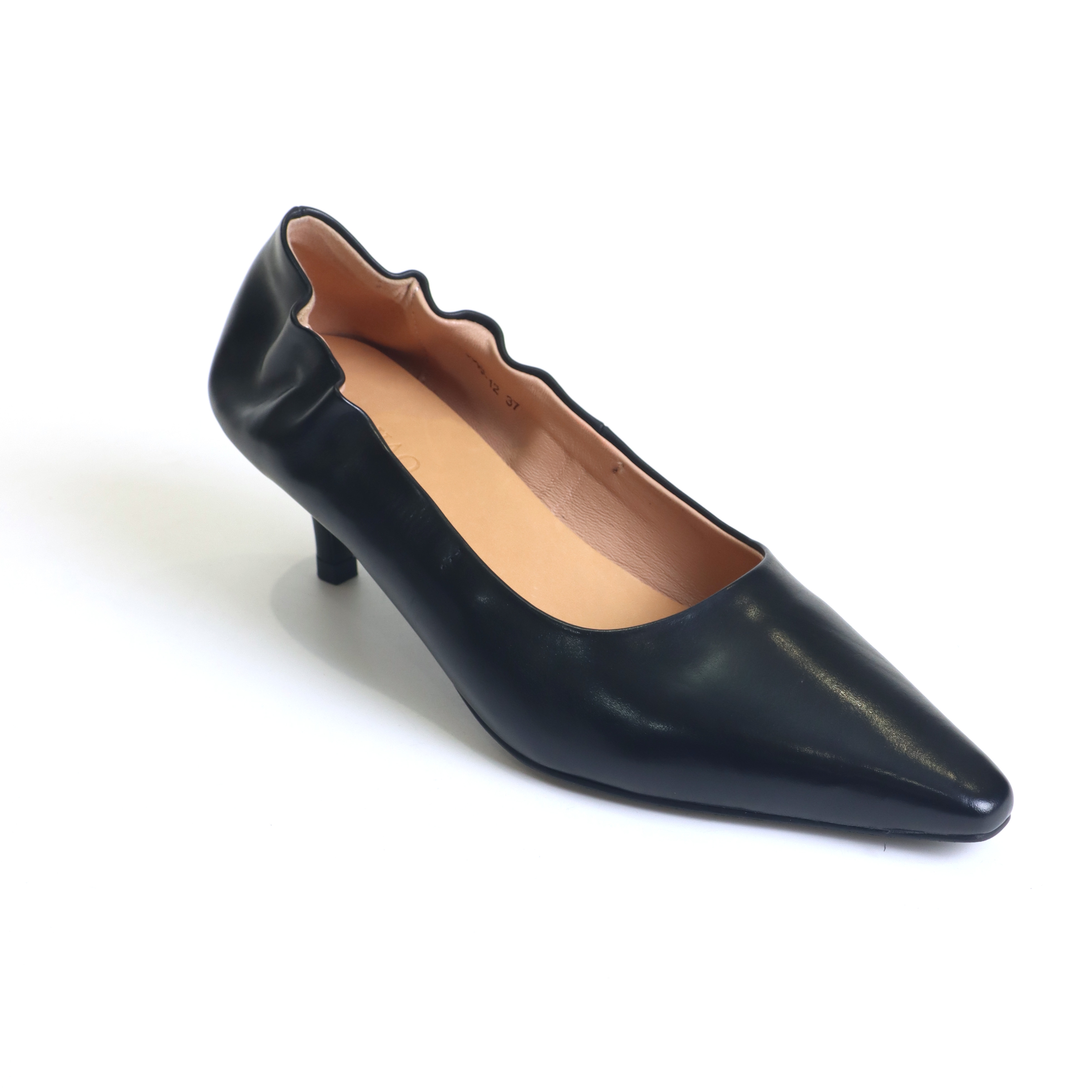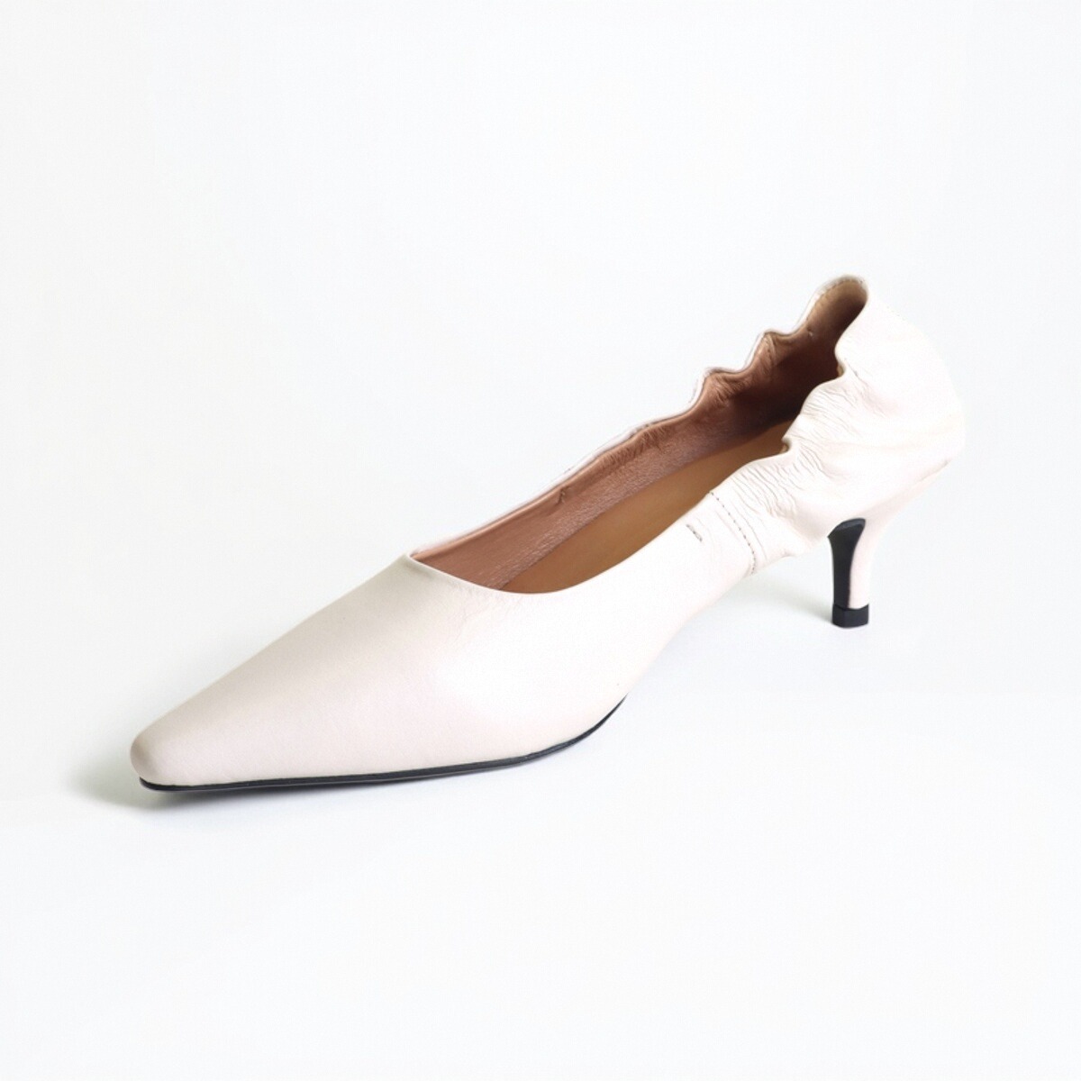 排角尖头胎牛皮浅口跟鞋
