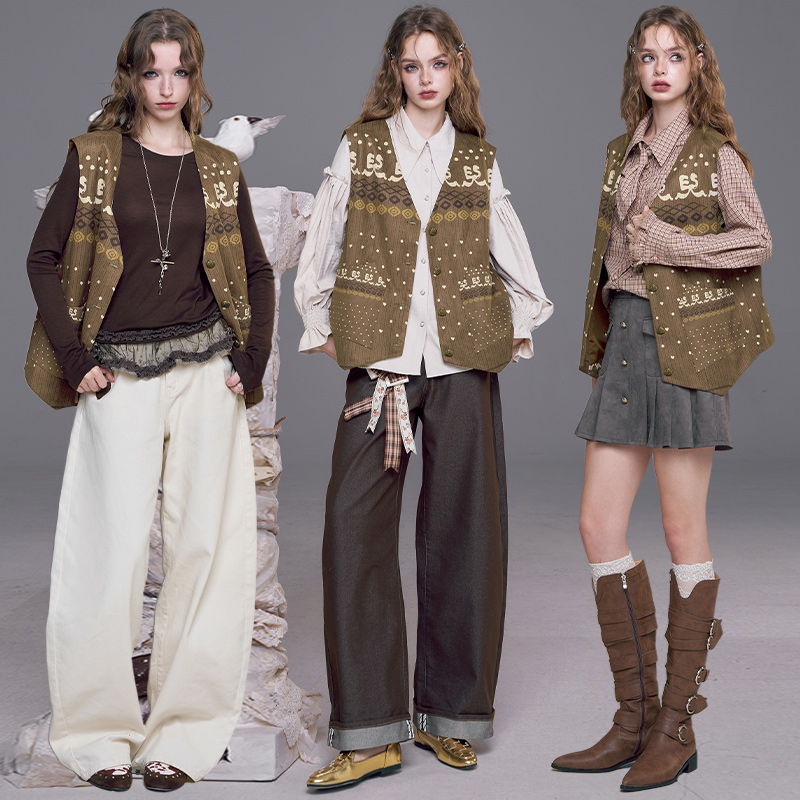 妖精的口袋复古宫廷风印花马甲女2025年早秋穿搭新款外搭叠穿坎肩