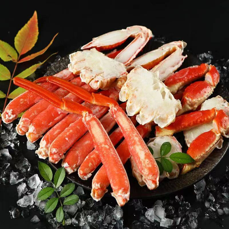 俄罗斯熟冻雪蟹腿拼盘松叶蟹长脚蟹蜘蛛蟹帝王足钳棒拐大板蟹切片