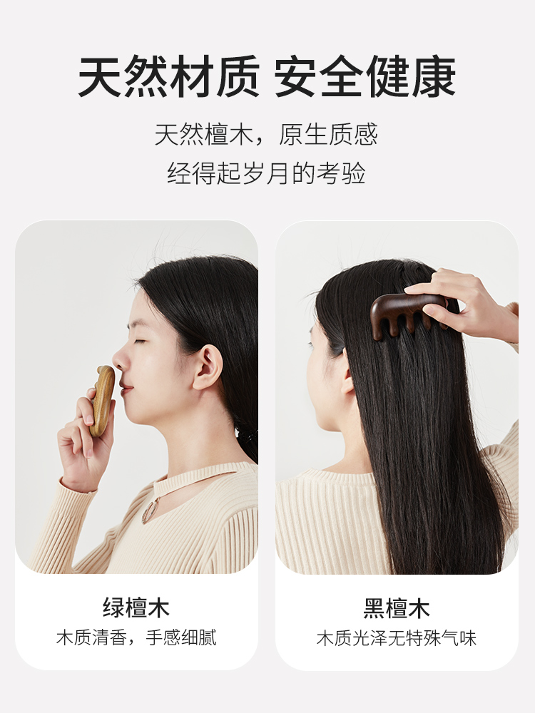 初心家用头部按摩梳檀木经络梳