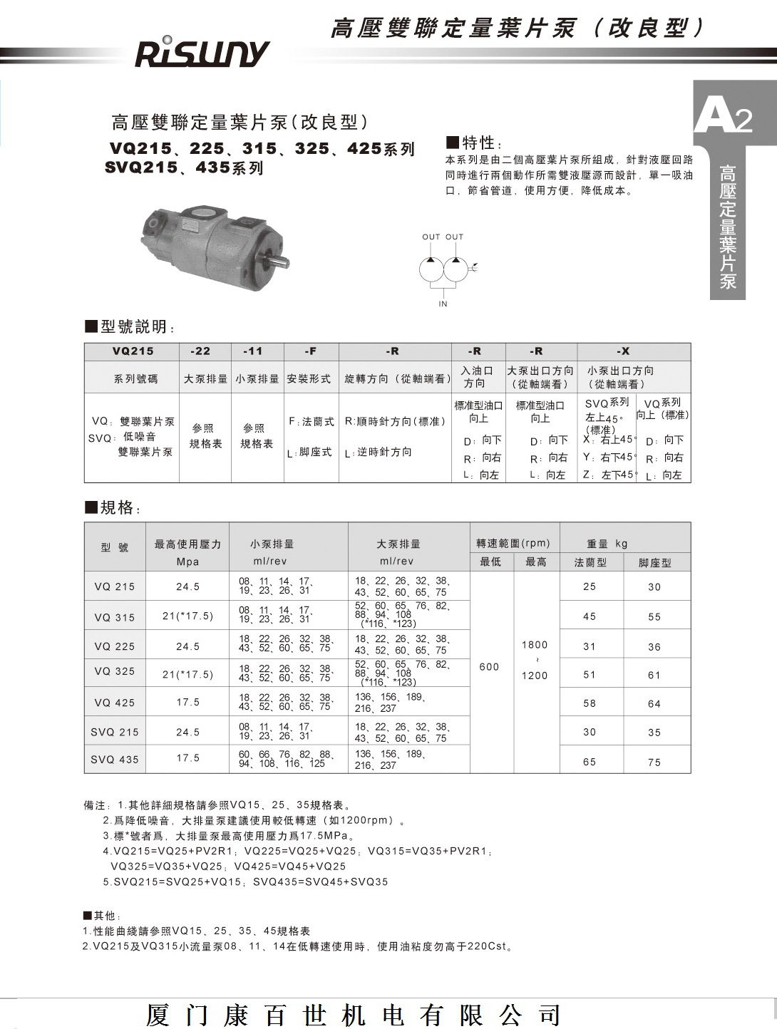 台湾朝田RISUNY叶片泵VQ425-136 156 189 216 237 SVQ215-18 22
