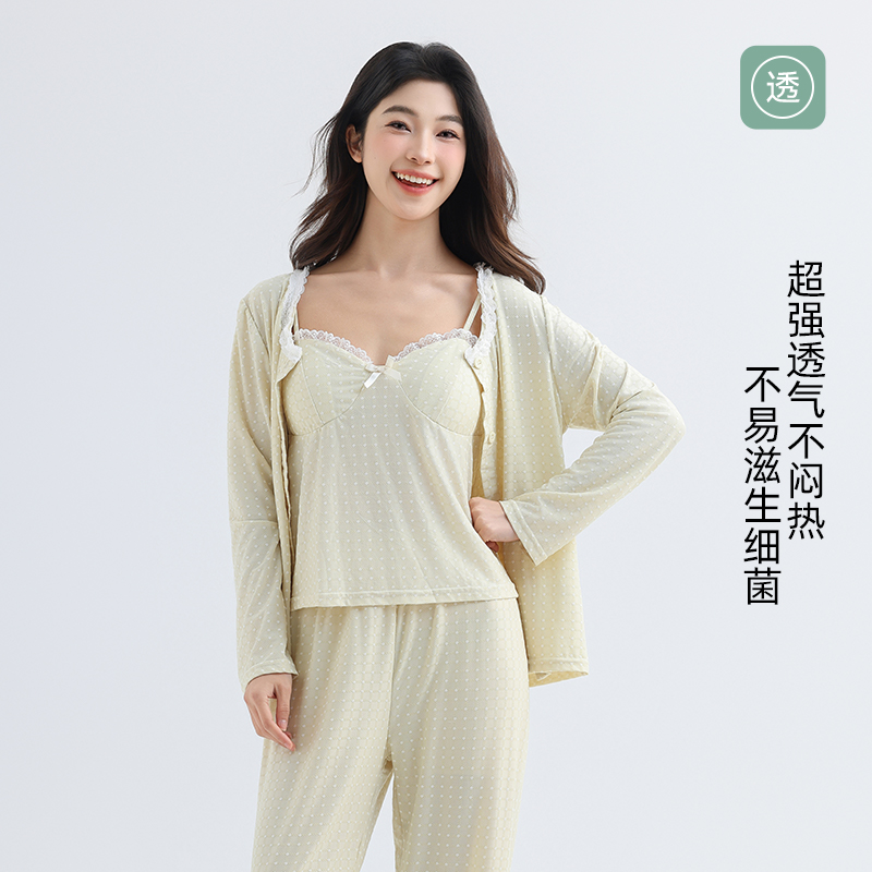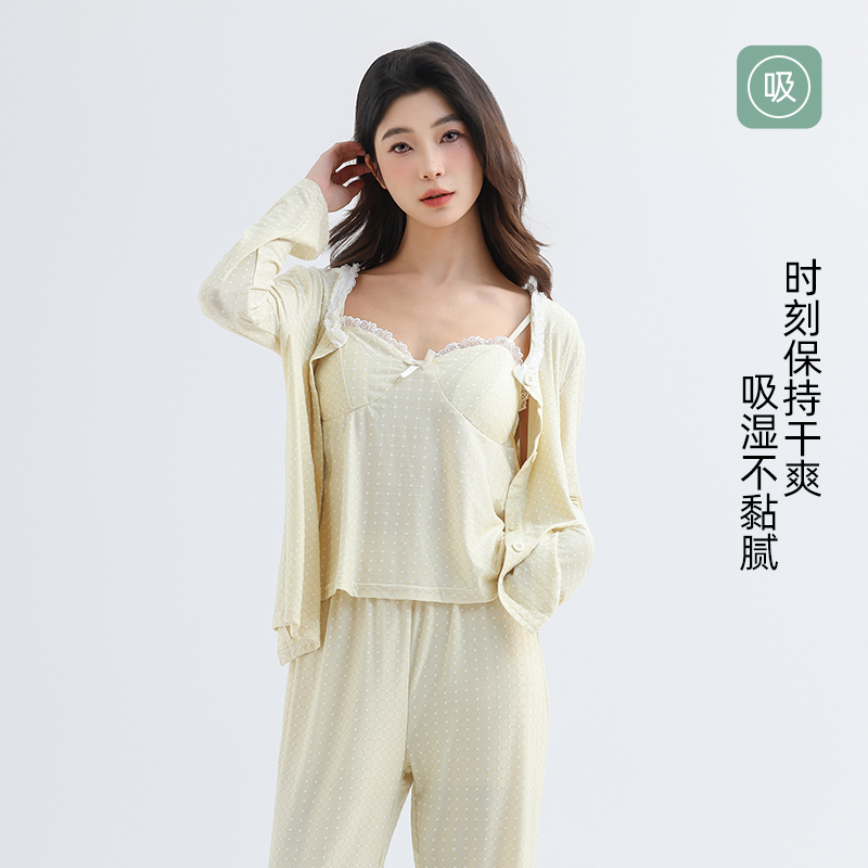 美季美优睡衣女士春秋夏季2025新款吊带胸垫性感三件套家居服套装