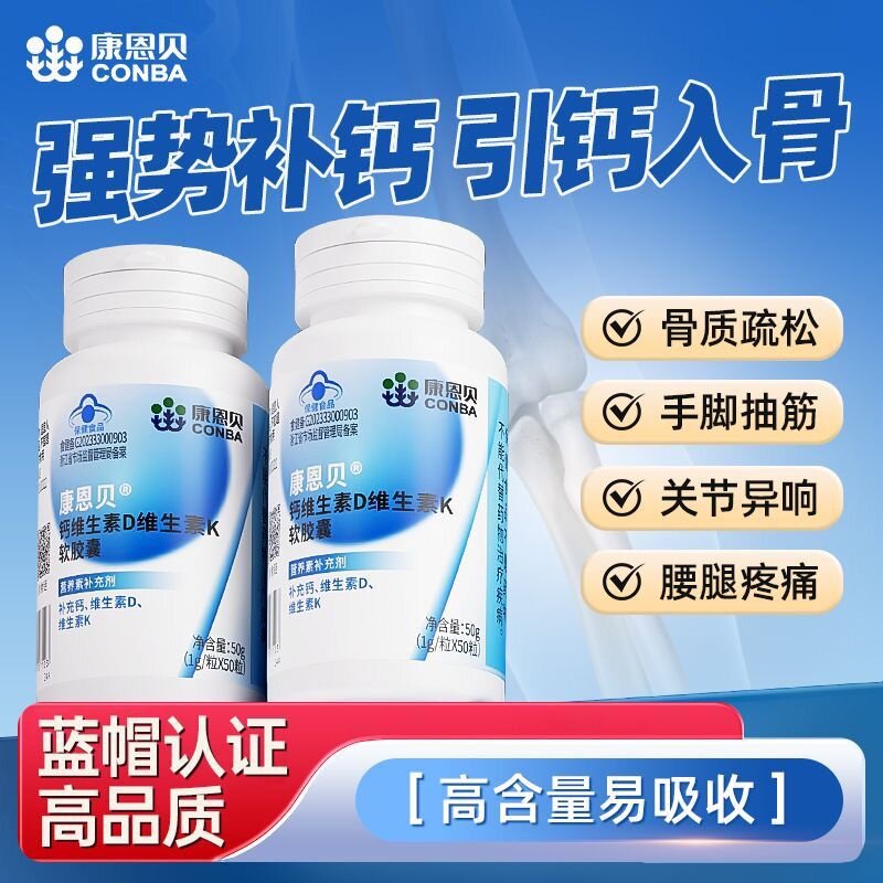 康恩贝液体钙DK维生素d3软胶囊K中老年孕妇补钙片官方旗舰店正品