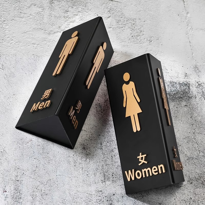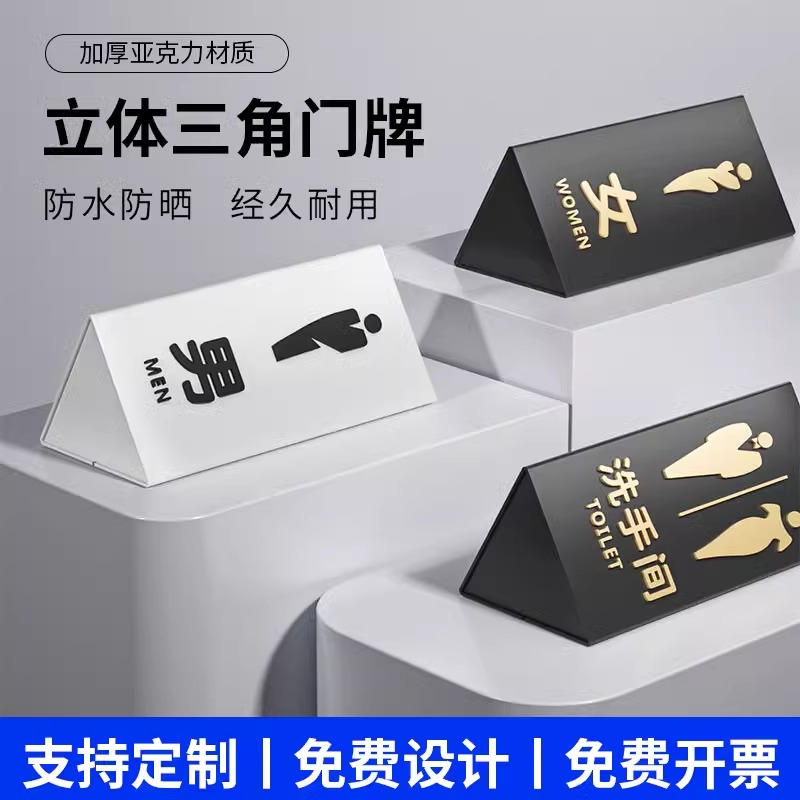 卫生间指示牌男女洗手间创意三角立体洗手间wc商场酒店高档挂式侧装门牌洗手间指示牌标识标志提示导向牌