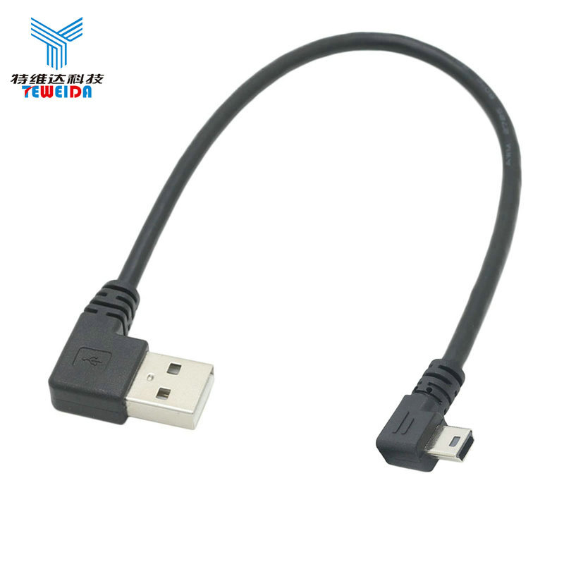 mini usb弯头数据连接线梯形T口USB充电电源线车载行车记录仪MP3/4移动硬盘转接头加长通用老式收音机