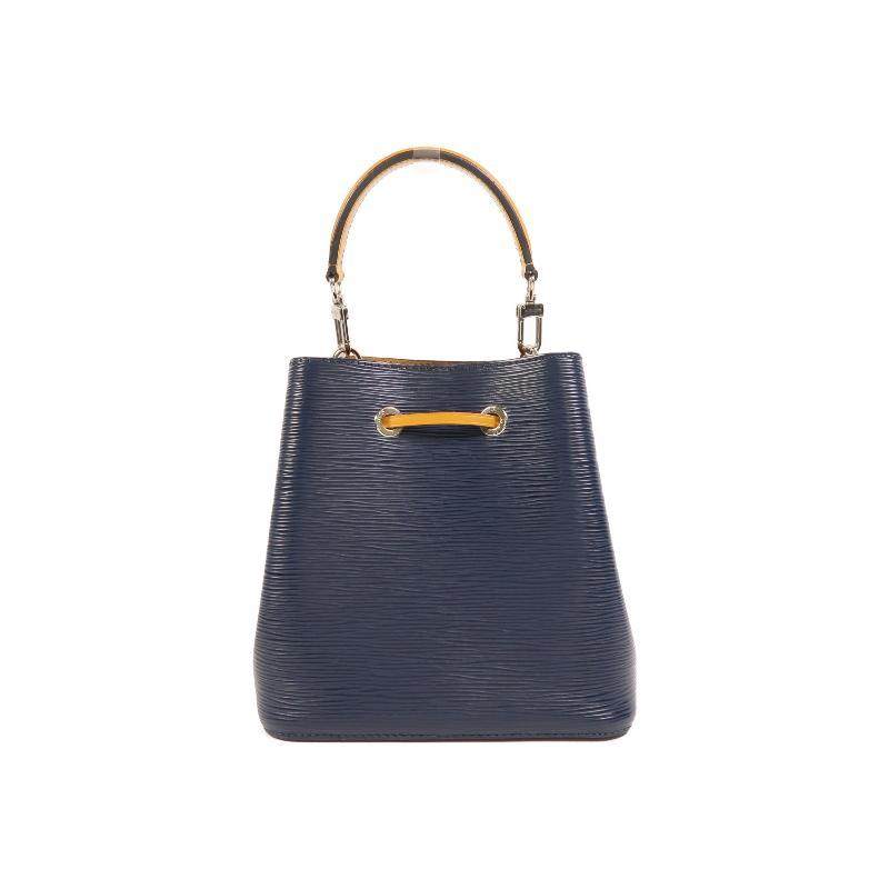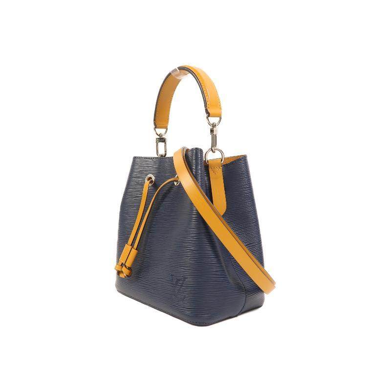 中古LV路易威登女包B级9新NEONOE水桶包牛皮斜挎包蓝色