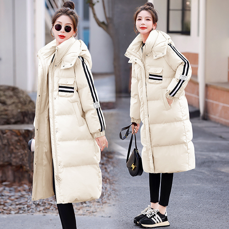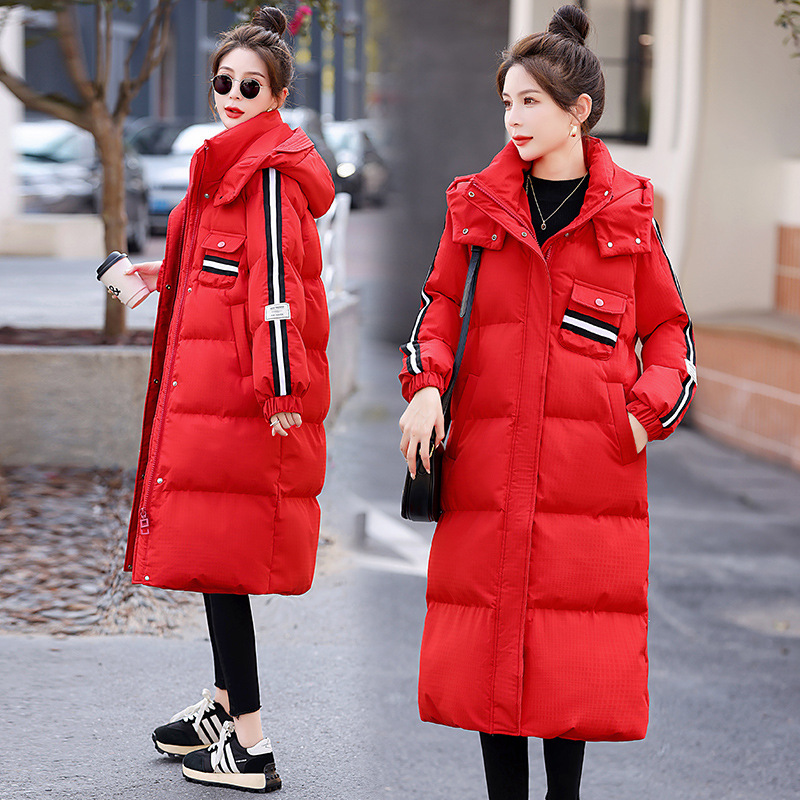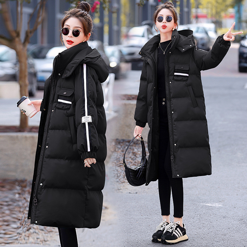 2024年棉衣中长款修身加厚通勤拉链连帽纯色气质大时尚潮羽绒棉衣